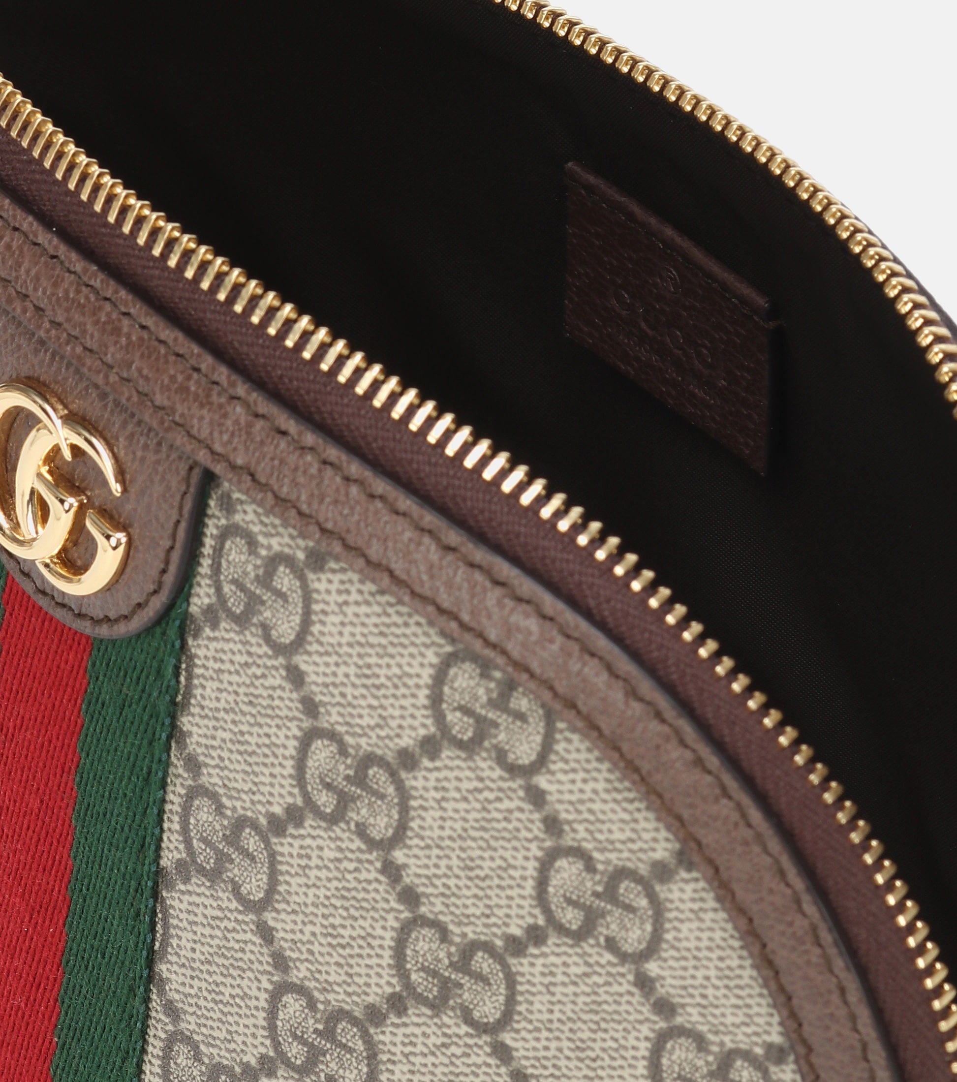 The zippered cosmetic bag is introduced within the Ophidia collection in GG Supreme canvas with brown leather trim. First used in the 1970s, the GG logo was an evolution of the original Gucci rhombi design from the 1930s, and from then it's been an established symbol of Gucci's heritage.
