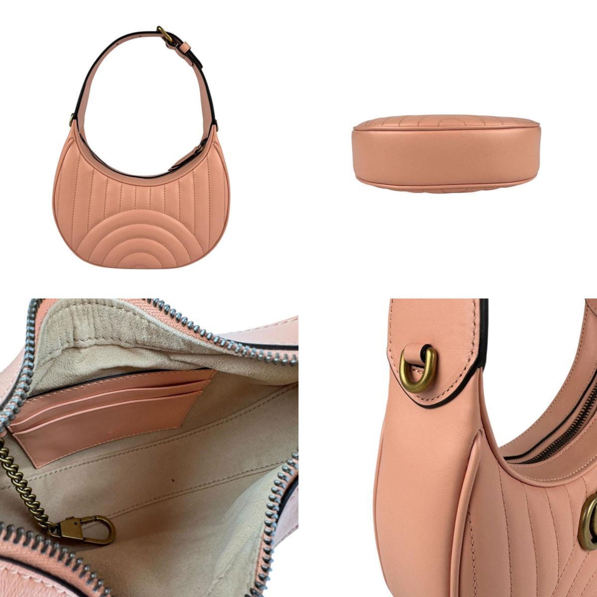 Brand: Gucci, Color: Gold, Salmon pink, Material: Leather, Metal, Dimensions: 11cm x 10cm x 5cm / 4.33'' x 3.93'' x 1.96'', Condition: Rank A. Rank A Used - A few traces of usage, some scratches / dirt can be seen but overall in very good condition. Before purchasing, please refer to the images for the exact condition of the item. Before purchasing, please refer to the images of the accessories included with the item. Bag Common Damage Scratch: Insignificant