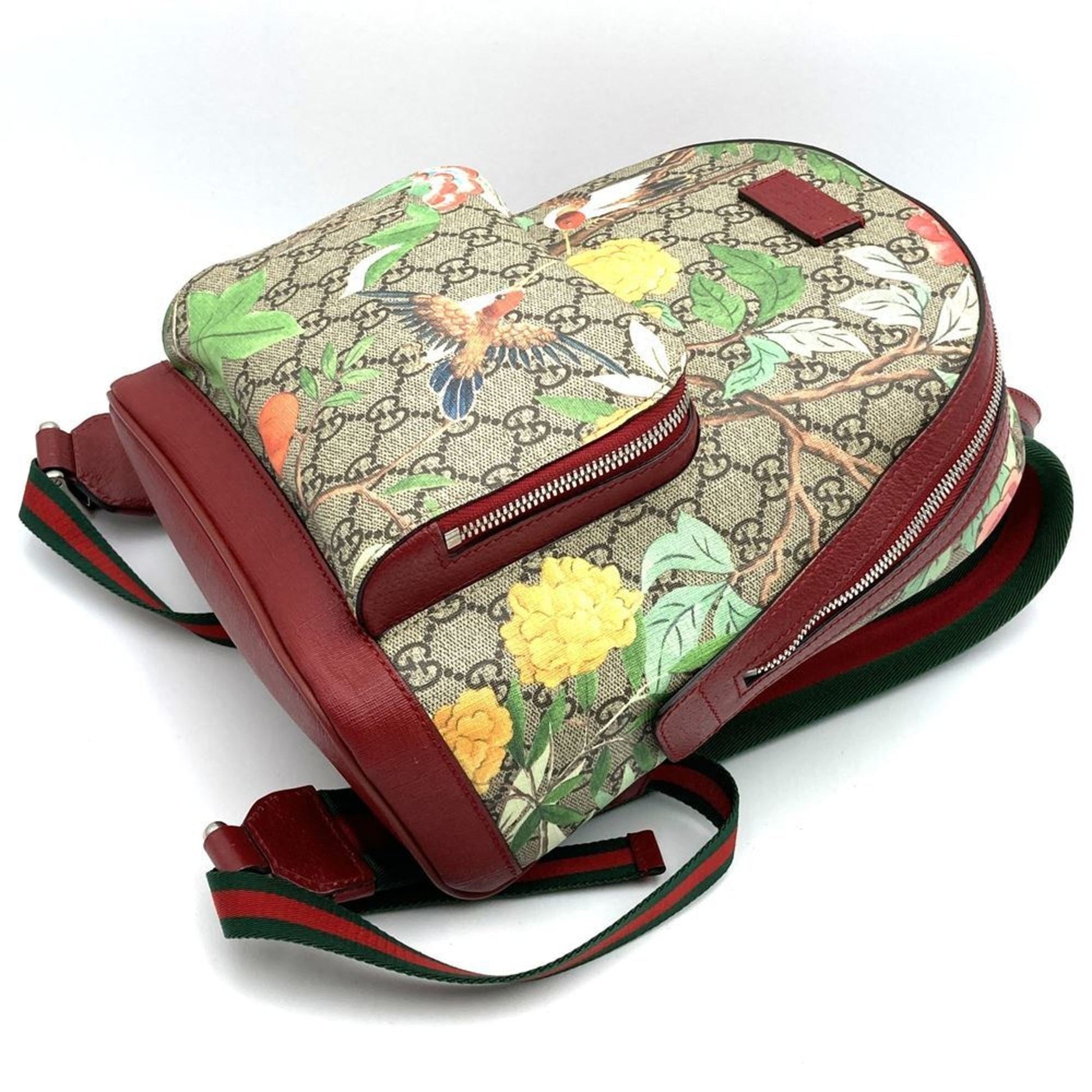 Brand: Gucci, Color: Green, Multi-color, Red color, Yellow, Material: GG Supreme, Canvas, Leather, Dimensions: 26cm x 25cm x 11cm / 10.23'' x 9.84'' x 4.33'', Condition: Rank AB. Rank AB Used - Traces of usage, scratches / dirt can be seen but generally in good condition. Before purchasing, please refer to the images for the exact condition of the item. Before purchasing, please refer to the images of the accessories included with the item. Bag Common Damage Scratch: Slight