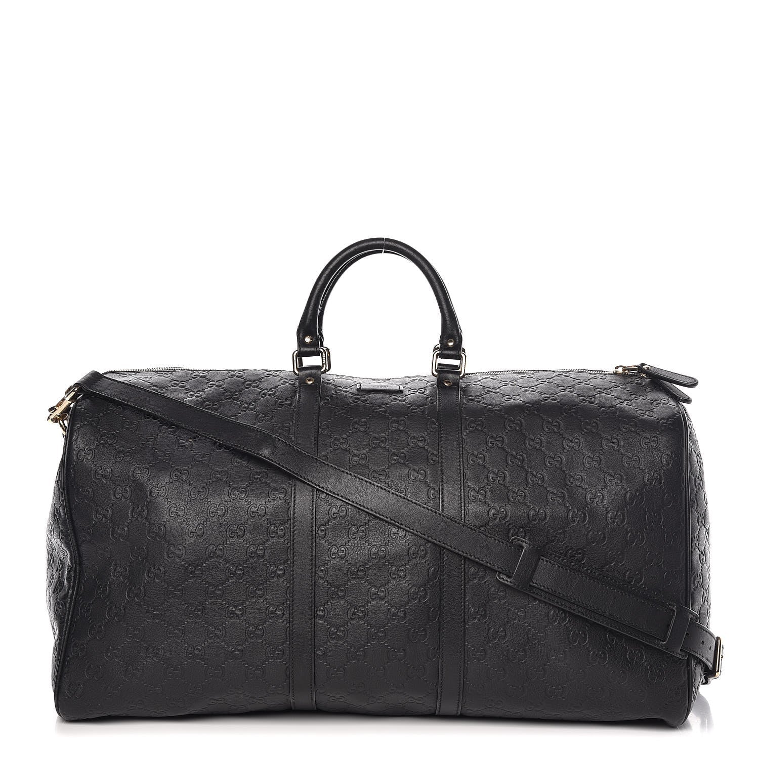 GUCCI GUCCISSIMA BLACK EMBOSSED LEATHER DUFFLE BAG
