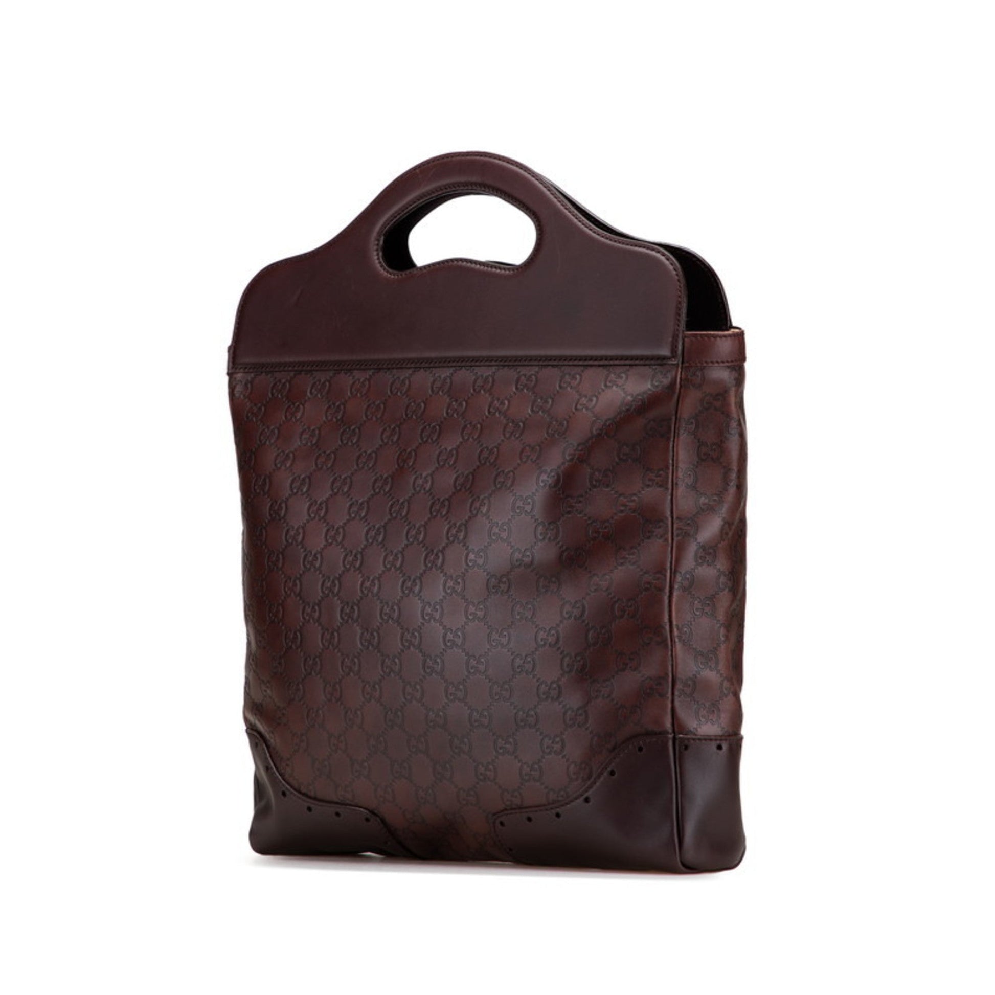 Brand: Gucci, Color: Brown, Material: Leather, Dimensions: 40cm x 36cm x 7.5cm / 15.74'' x 14.17'' x 2.95'', Condition: Rank AB. Rank AB Used - Traces of usage, scratches / dirt can be seen but generally in good condition. Before purchasing, please refer to the images for the exact condition of the item. Before purchasing, please refer to the images of the accessories included with the item. Bag Common Damage Scratch: Slight