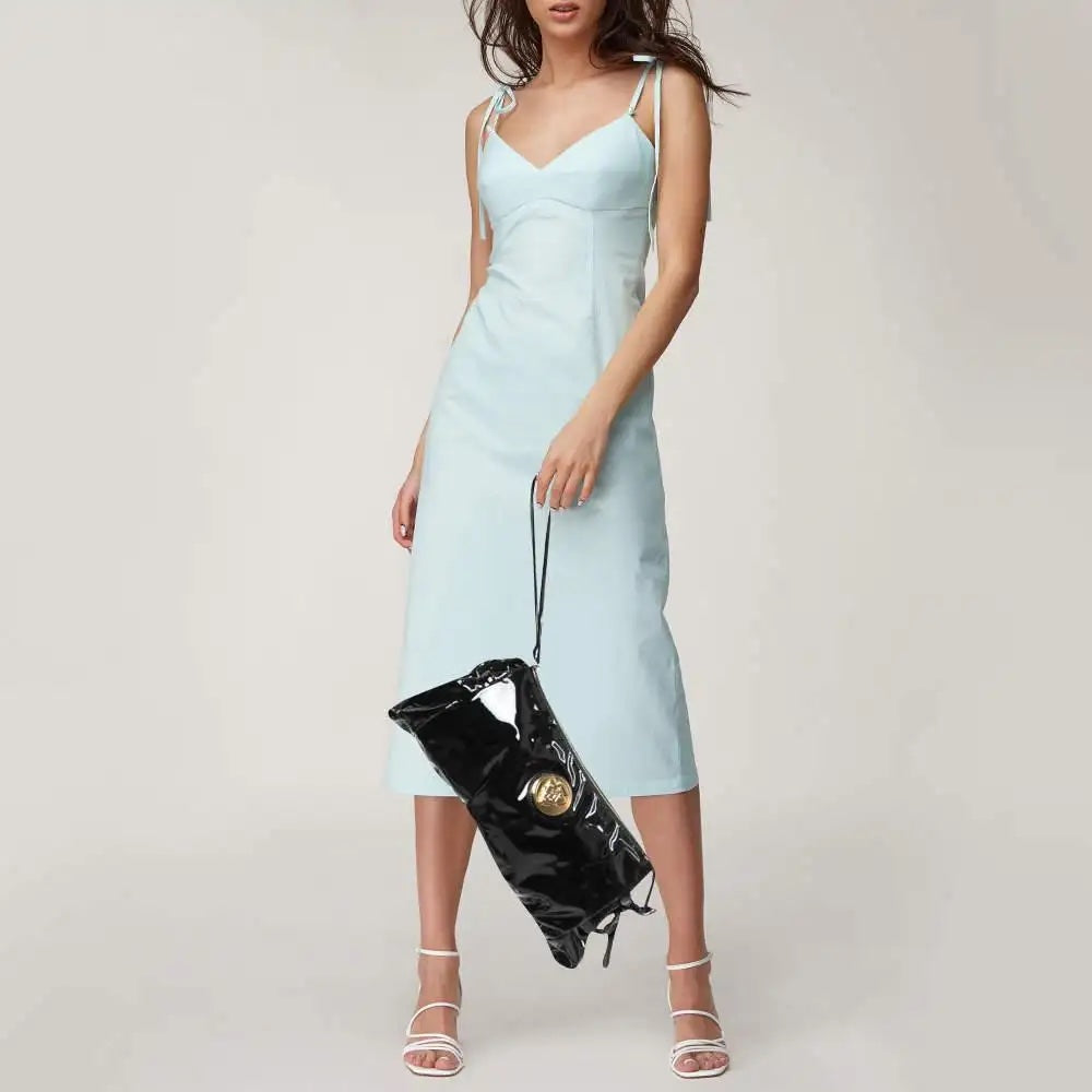 Features Glossy Crystal coated canvas with a bow details on the sides and a large Goldtone Gucci crest logo. A glamorous piece to add to any collection.