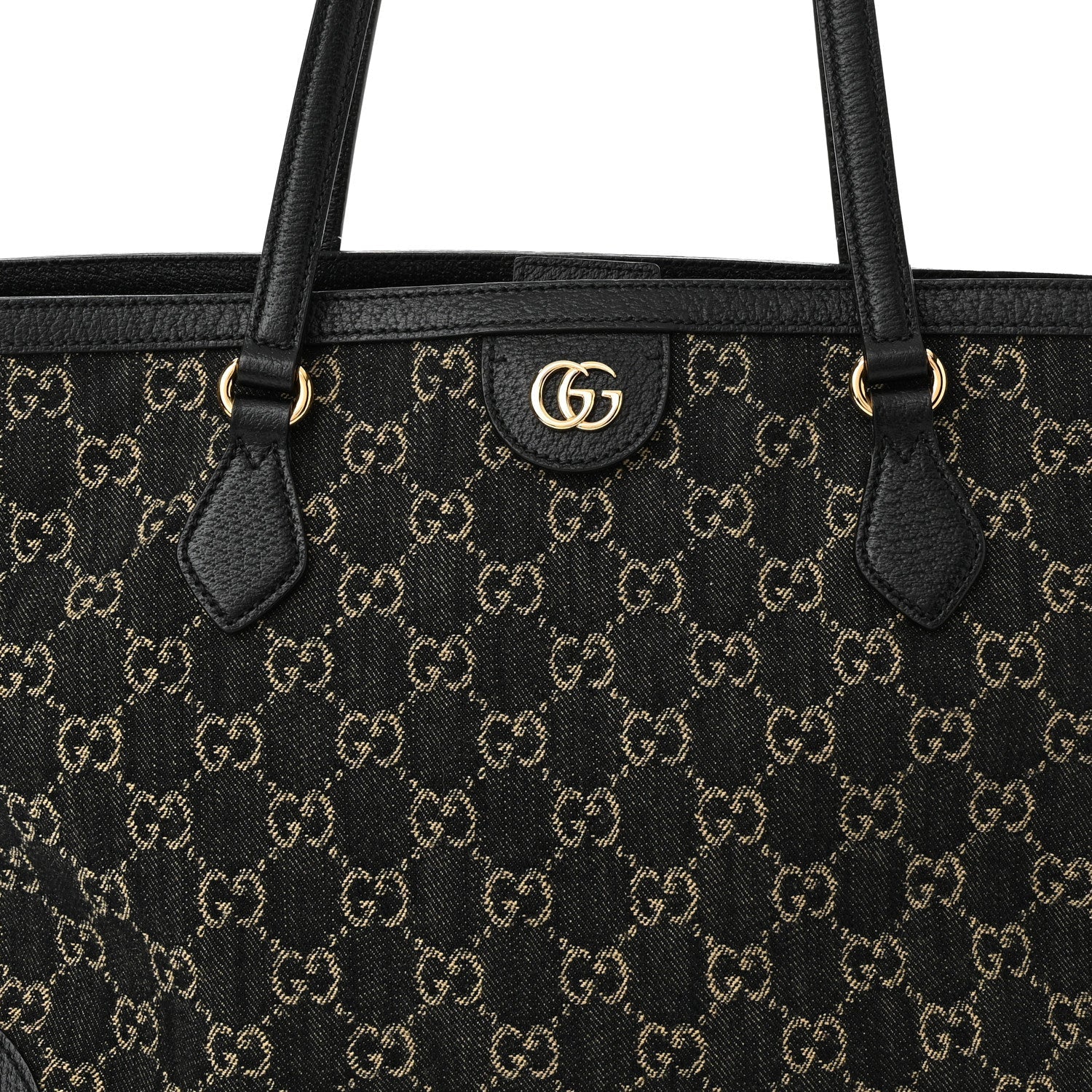 GUCCI JACQUARD GG MONOGRAM OPHIDIA MEDIUM DENIM TOTE BAG
