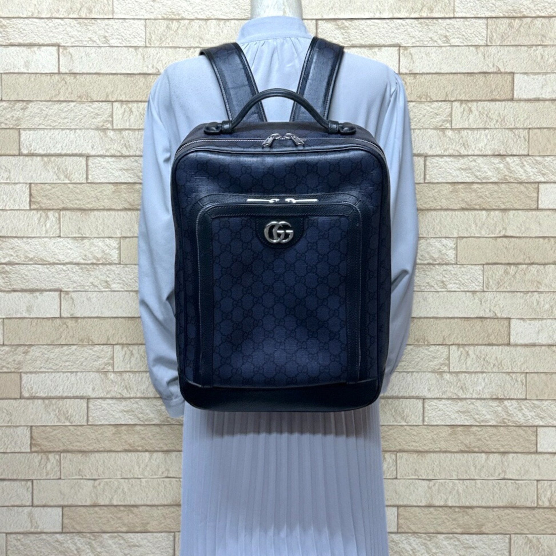 Brand: Gucci, Model Number: 745718, Color: Navy, Material: GG Supreme, Dimensions: 38cm x 28cm x 13cm / 14.96'' x 11.02'' x 5.11'', Condition: Rank AB. Rank AB Used - Traces of usage, scratches / dirt can be seen but generally in good condition. Before purchasing, please refer to the images for the exact condition of the item. Before purchasing, please refer to the images of the accessories included with the item. Damage Ranking: -