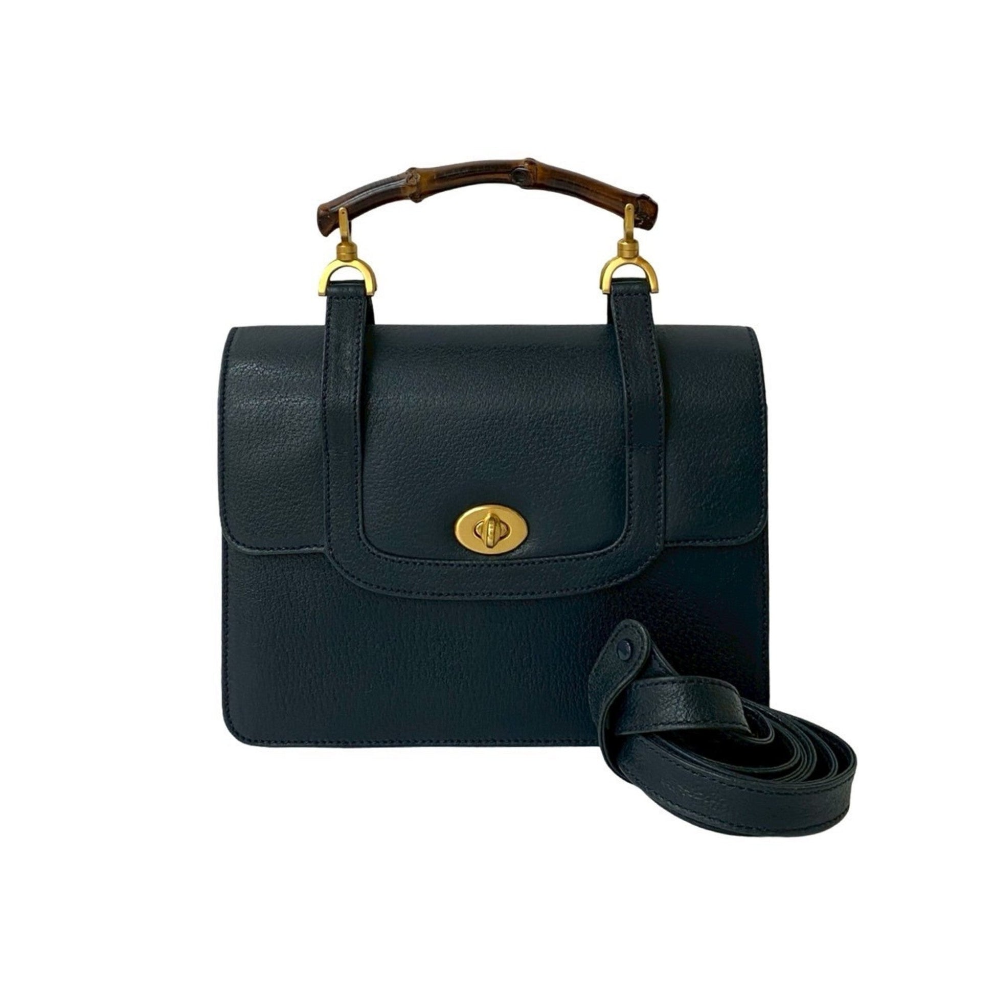 Brand: Gucci, Color: Navy, Material: Leather, Bamboo, Dimensions: 18.5cm x 24cm x 7.5cm / 7.28'' x 9.44'' x 2.95'', Condition: Rank AB. Rank AB Used - Traces of usage, scratches / dirt can be seen but generally in good condition. Before purchasing, please refer to the images for the exact condition of the item. Before purchasing, please refer to the images of the accessories included with the item. Damage Ranking: Slight