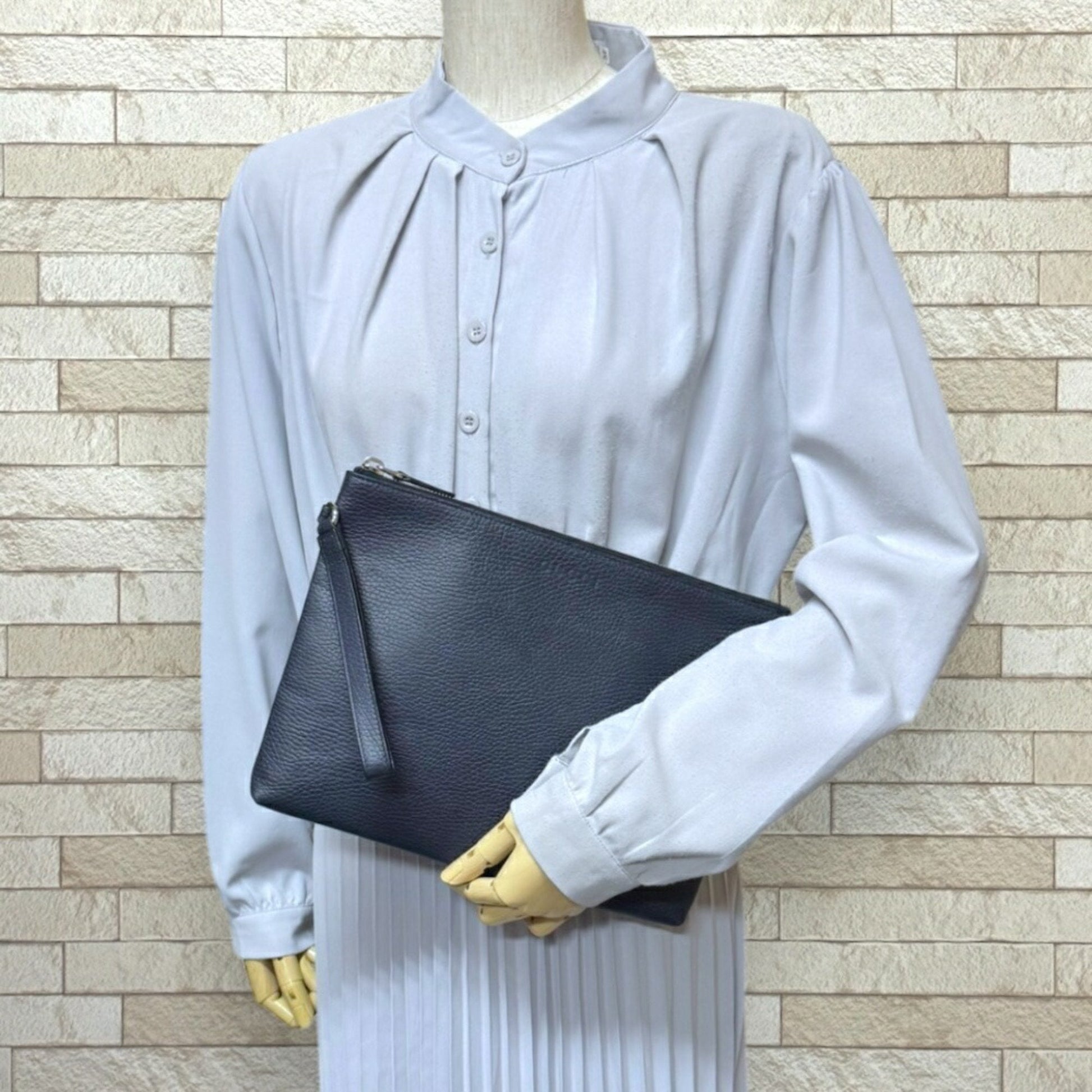 Brand: Gucci, Color: Navy, Material: Leather, Dimensions: 21cm x 29cm x 2.5cm / 8.26'' x 11.41'' x 0.98'', Condition: Rank AB. Rank AB Used - Traces of usage, scratches / dirt can be seen but generally in good condition. Before purchasing, please refer to the images for the exact condition of the item. Before purchasing, please refer to the images of the accessories included with the item. Damage Ranking: Slight