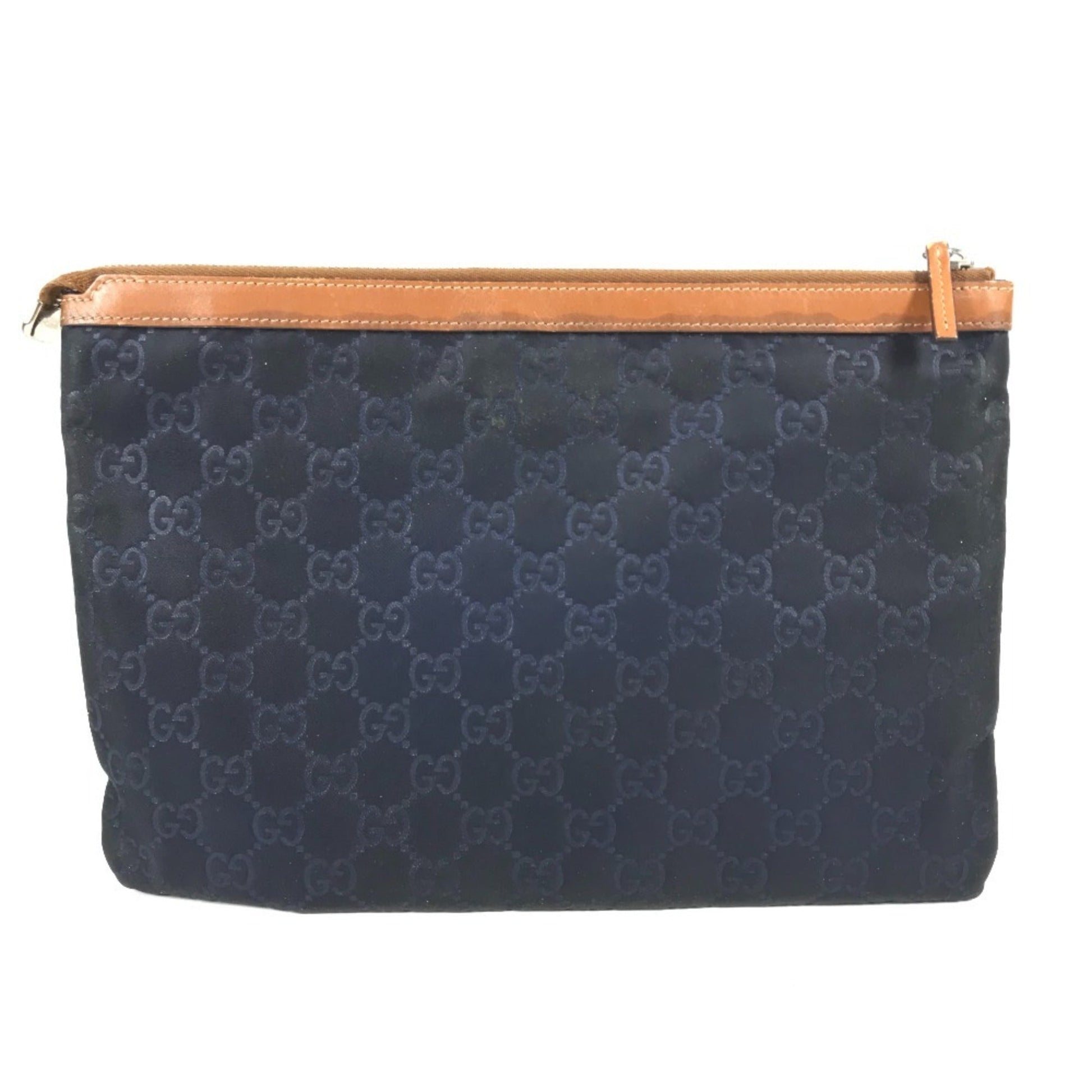 Brand: Gucci, Model Number: 286209, Color: Navy, Material: Leather, Nylon, Dimensions: 20.5cm x 29.5cm x 1cm / 8.07'' x 11.61'' x 0.39'', Condition: Rank B. Rank B Used - Traces of usage, damages / dirt can be seen but it is still in acceptable condition for continued usage. Before purchasing, please refer to the images for the exact condition of the item. Before purchasing, please refer to the images of the accessories included with the item. Damage Ranking: -