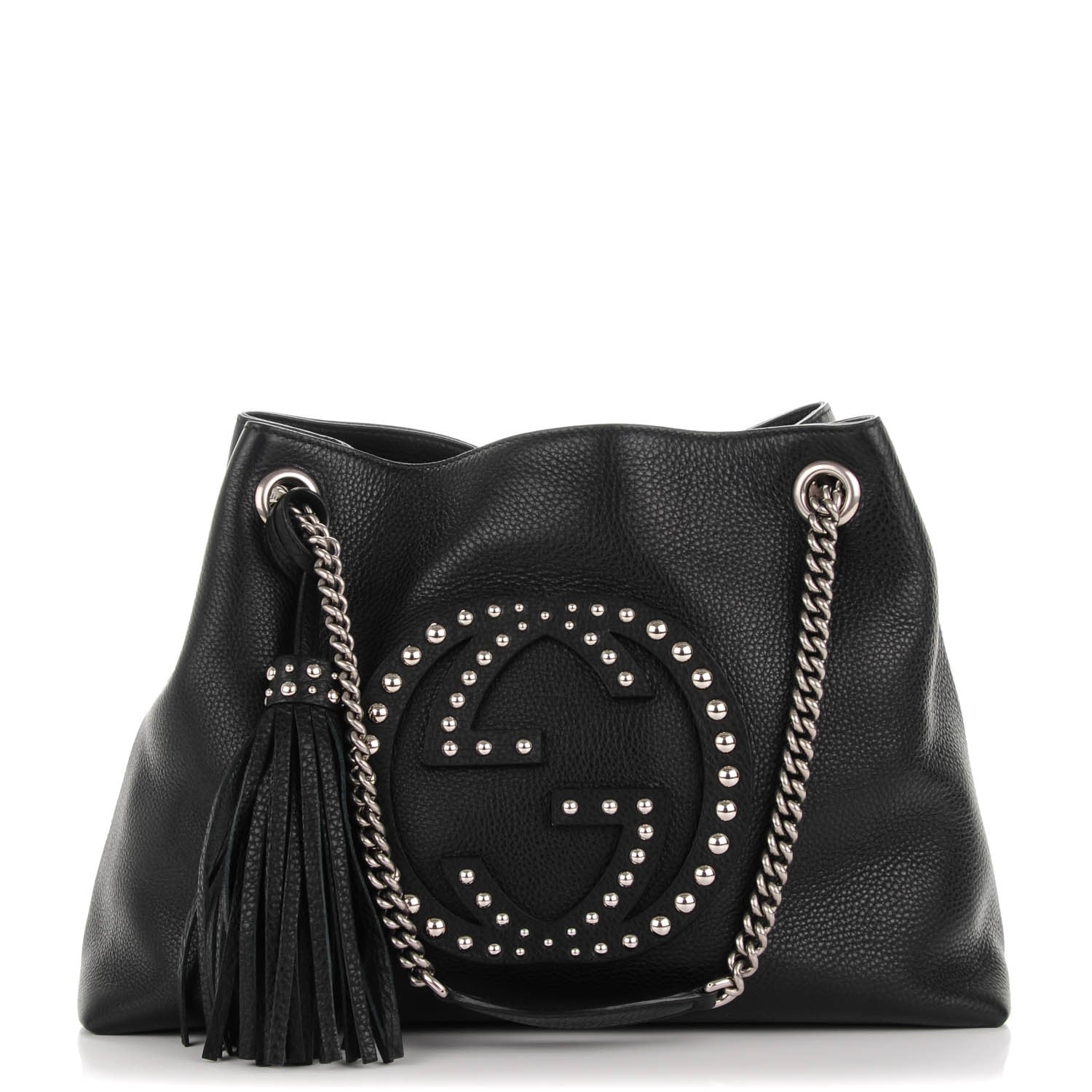 GUCCI PEBBLED CALFSKIN LEATHER STUDDED MEDIUM SOHO BAG