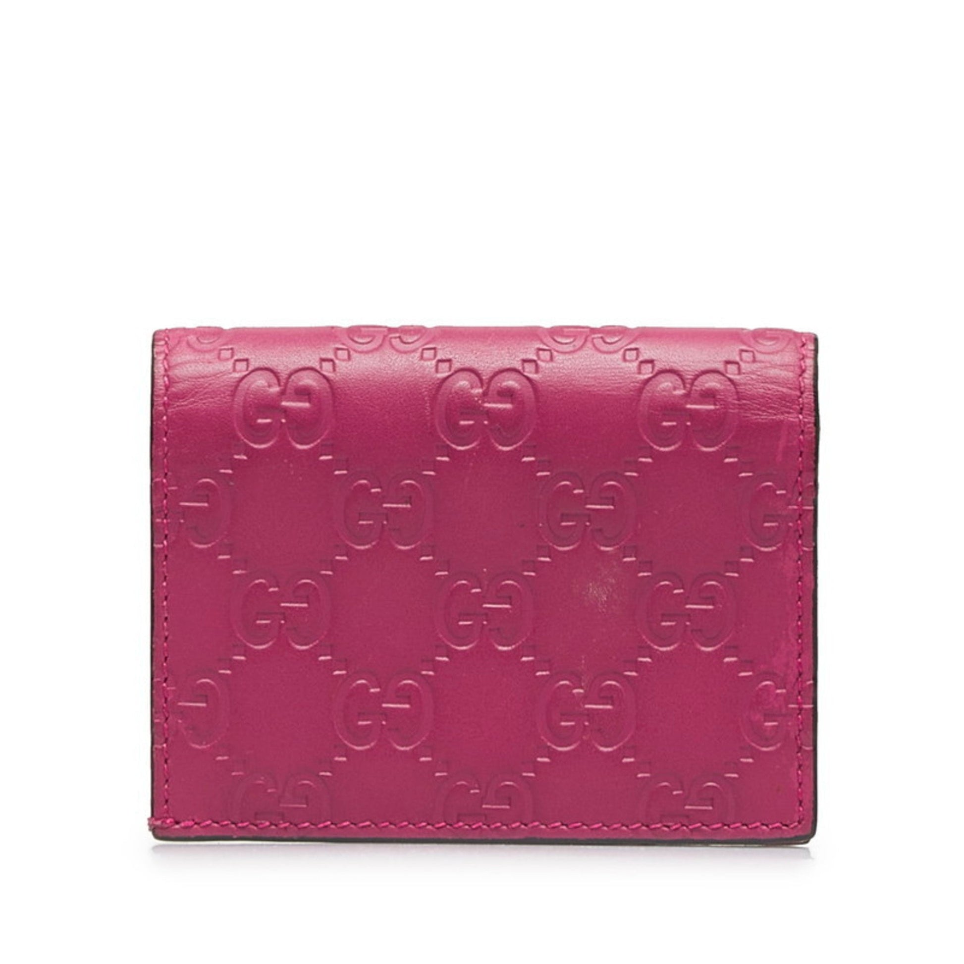 Brand: Gucci, Color: Pink, Material: Leather, Dimensions: 8cm x 10.5cm x 2cm / 3.14'' x 4.13'' x 0.78'', Condition: Rank B. Rank B Used - Traces of usage, damages / dirt can be seen but it is still in acceptable condition for continued usage. Before purchasing, please refer to the images for the exact condition of the item. Before purchasing, please refer to the images of the accessories included with the item. Damage Ranking: Slight