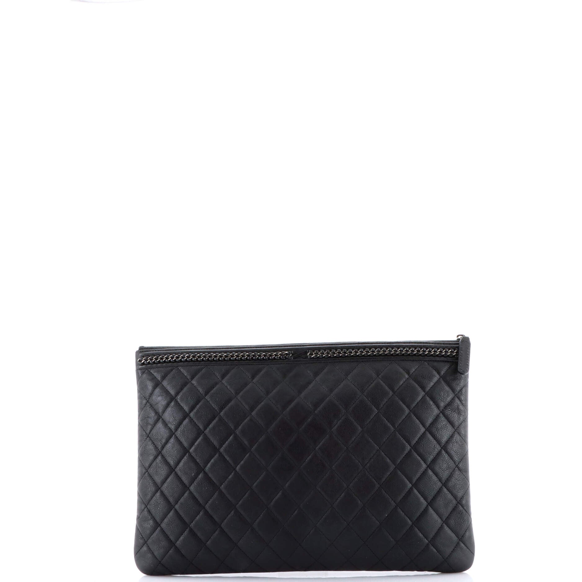 Boy O Case Clutch Quilted Lambskin with Chain Detail Large