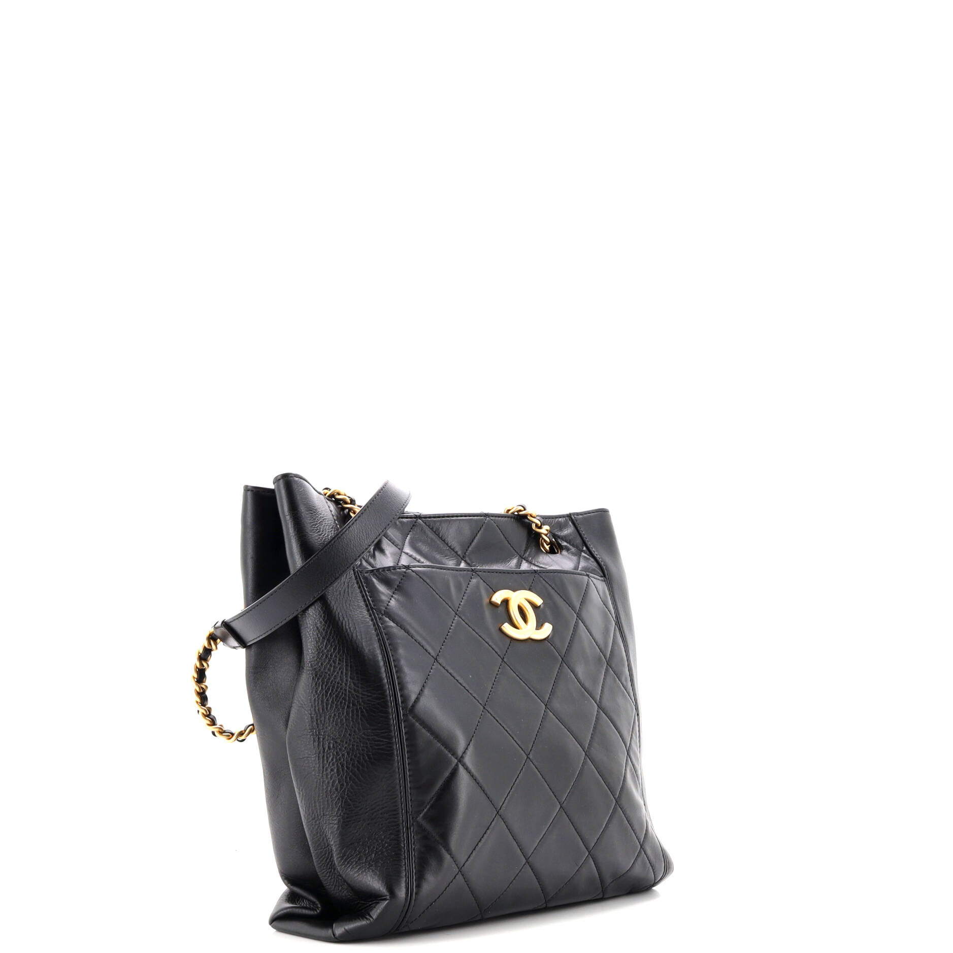 CC Front Pocket Shopping Tote Quilted Calfskin Small