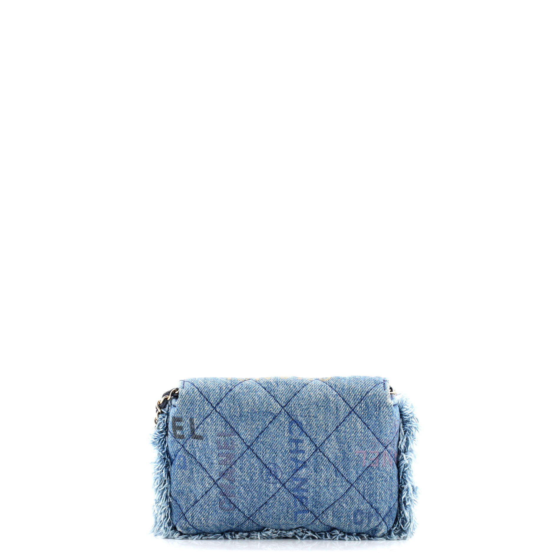 Model: Denim Mood Flap Clutch with Chain Logo Printed Quilted Fringe Denim