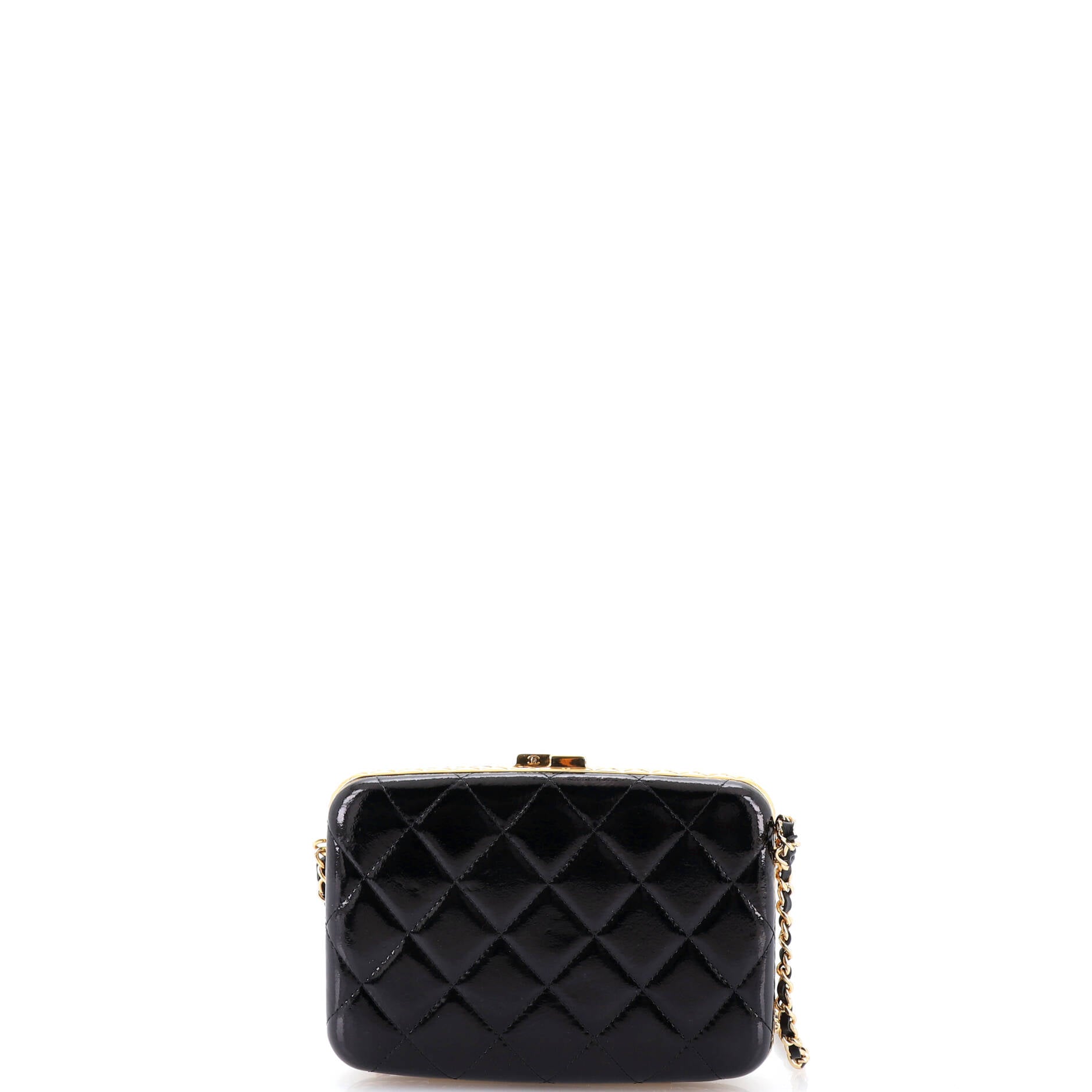 Framed Box Clutch with Chain Quilted Patent Small