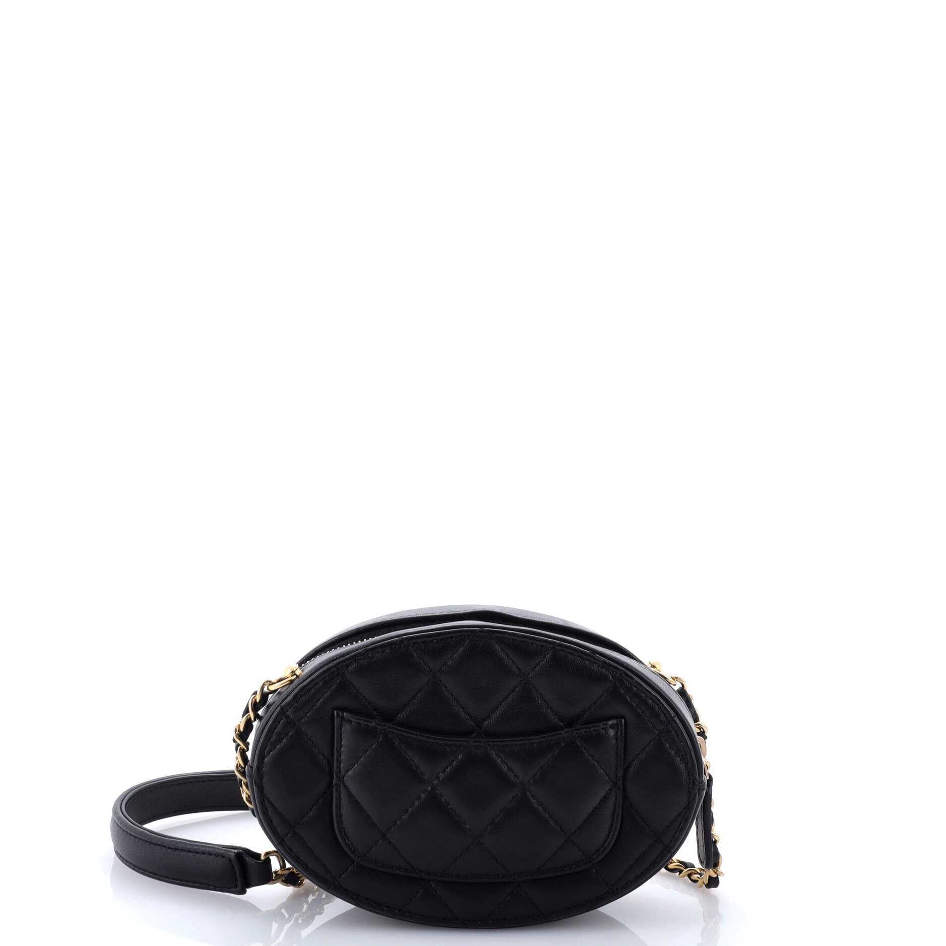 Logo Plate Oval Clutch With Chain Metal and Lambskin