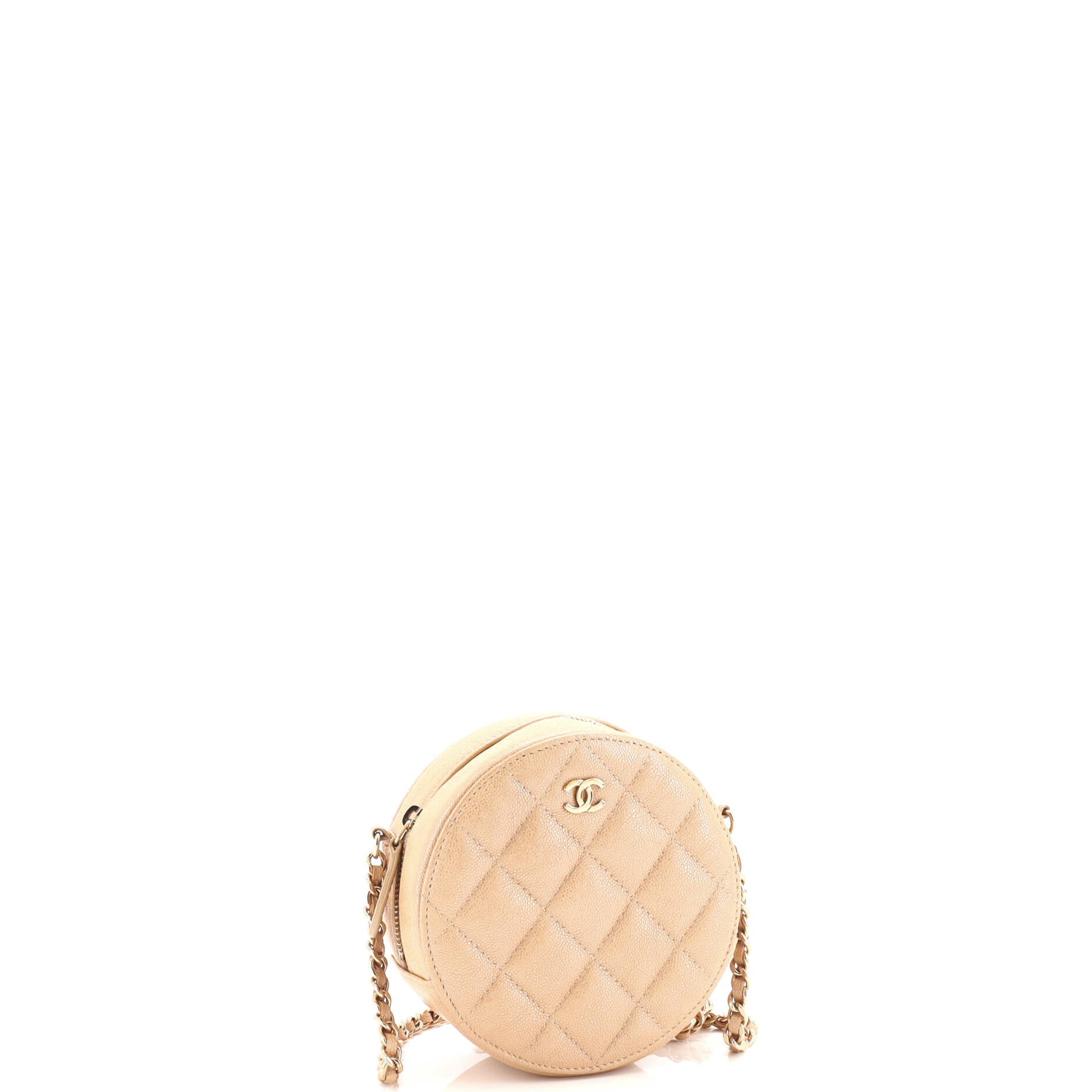 Model: Round Clutch with Chain Quilted Caviar Mini