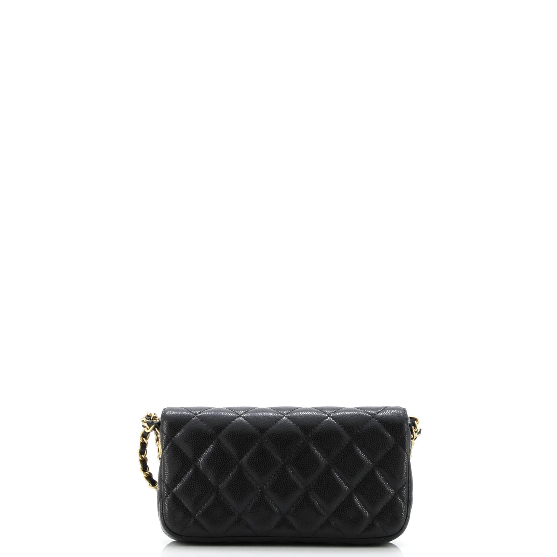 Twist Your Buttons Flap Clutch with Chain Quilted Caviar