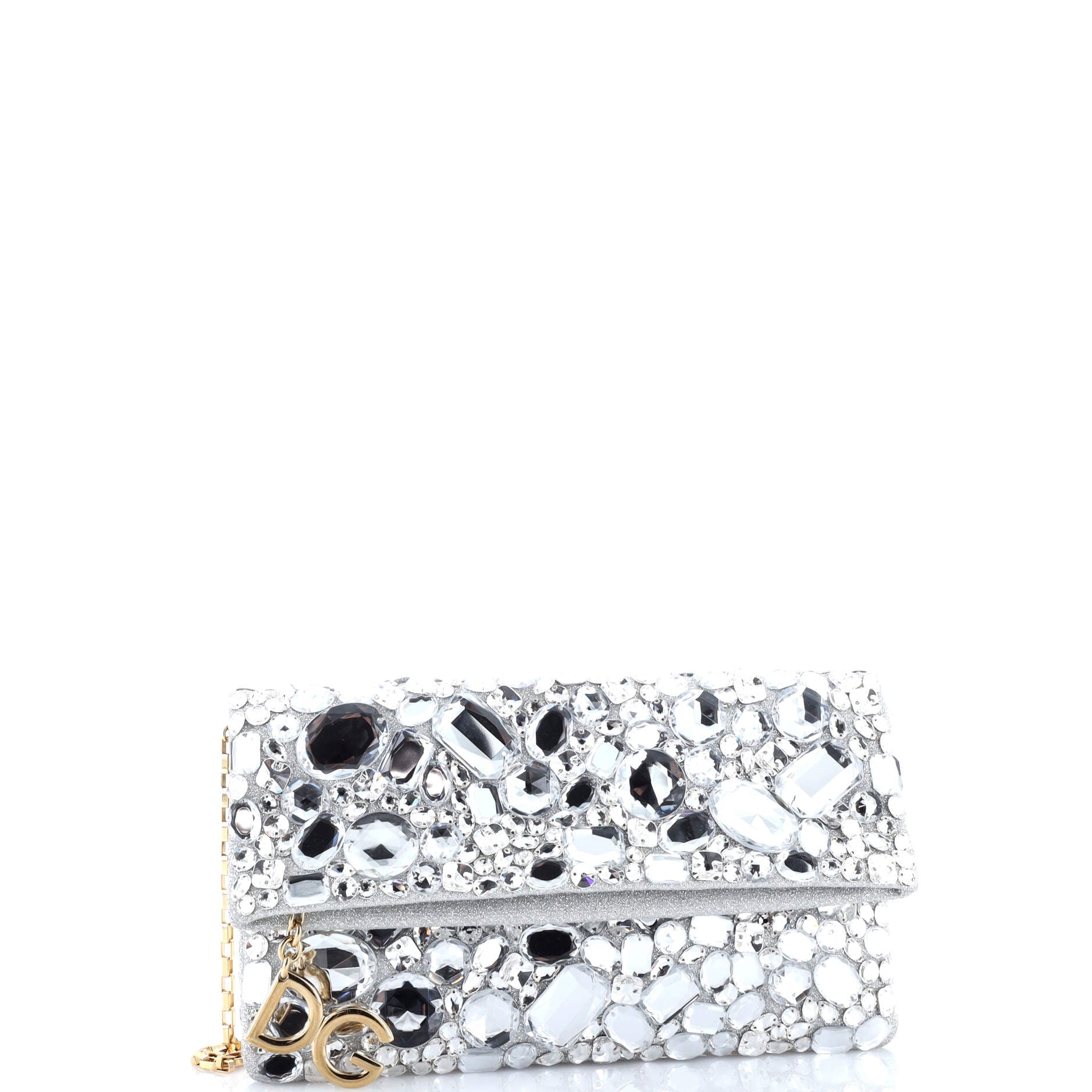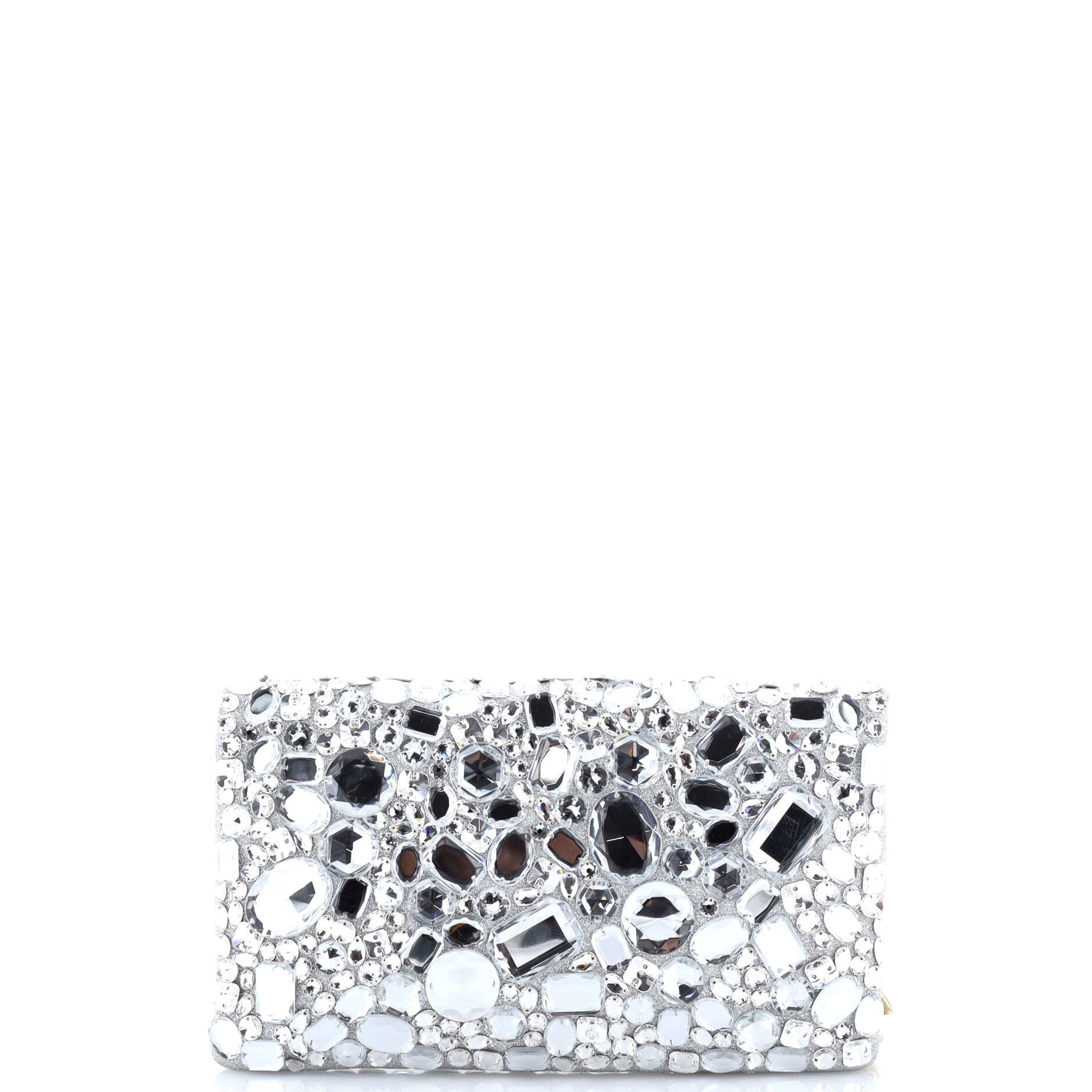 Fold Over Chain Clutch Crystal Embellished Satin Medium