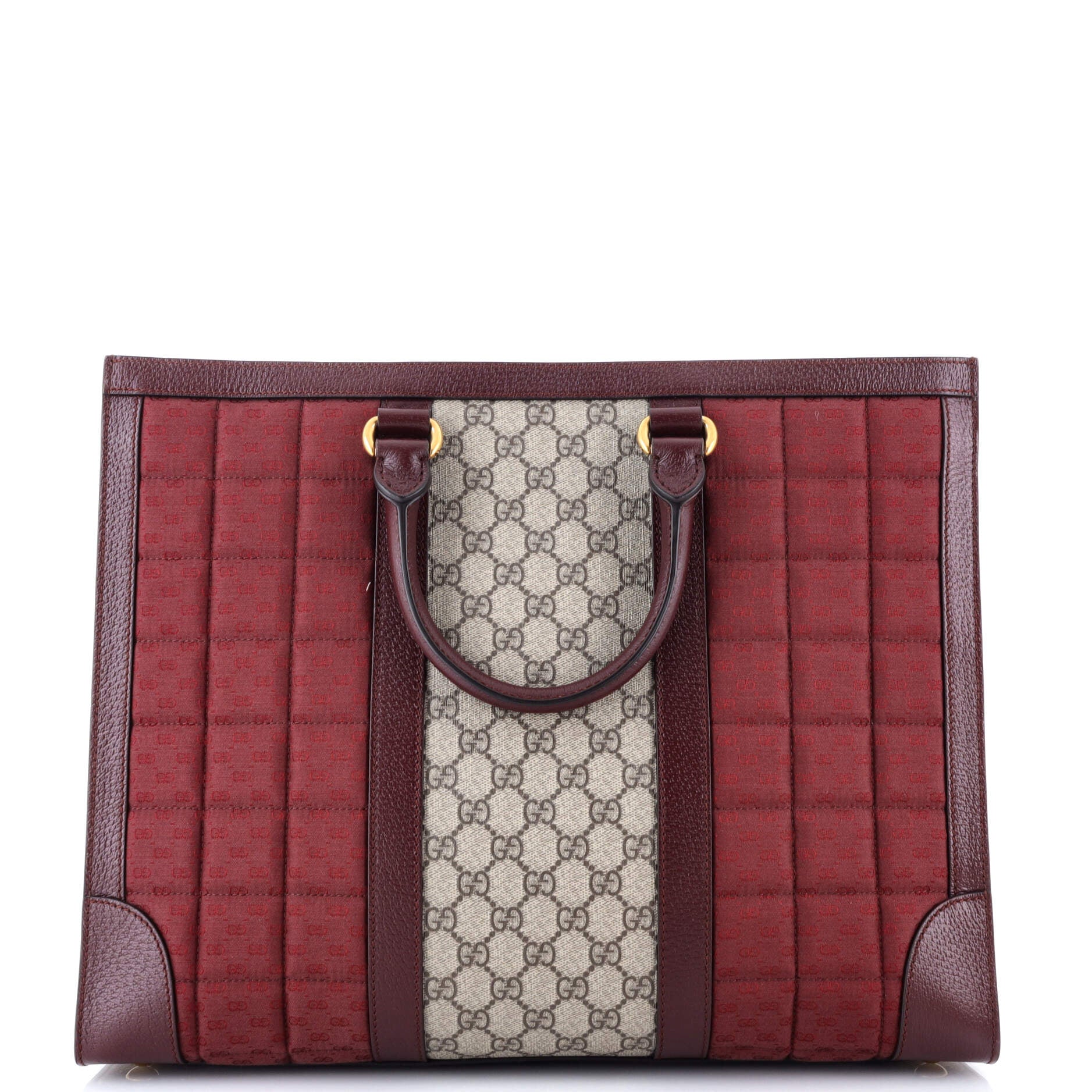 Ophidia Convertible Open Tote GG Coated Canvas and Quilted Microguccissima Canvas with Leather Large