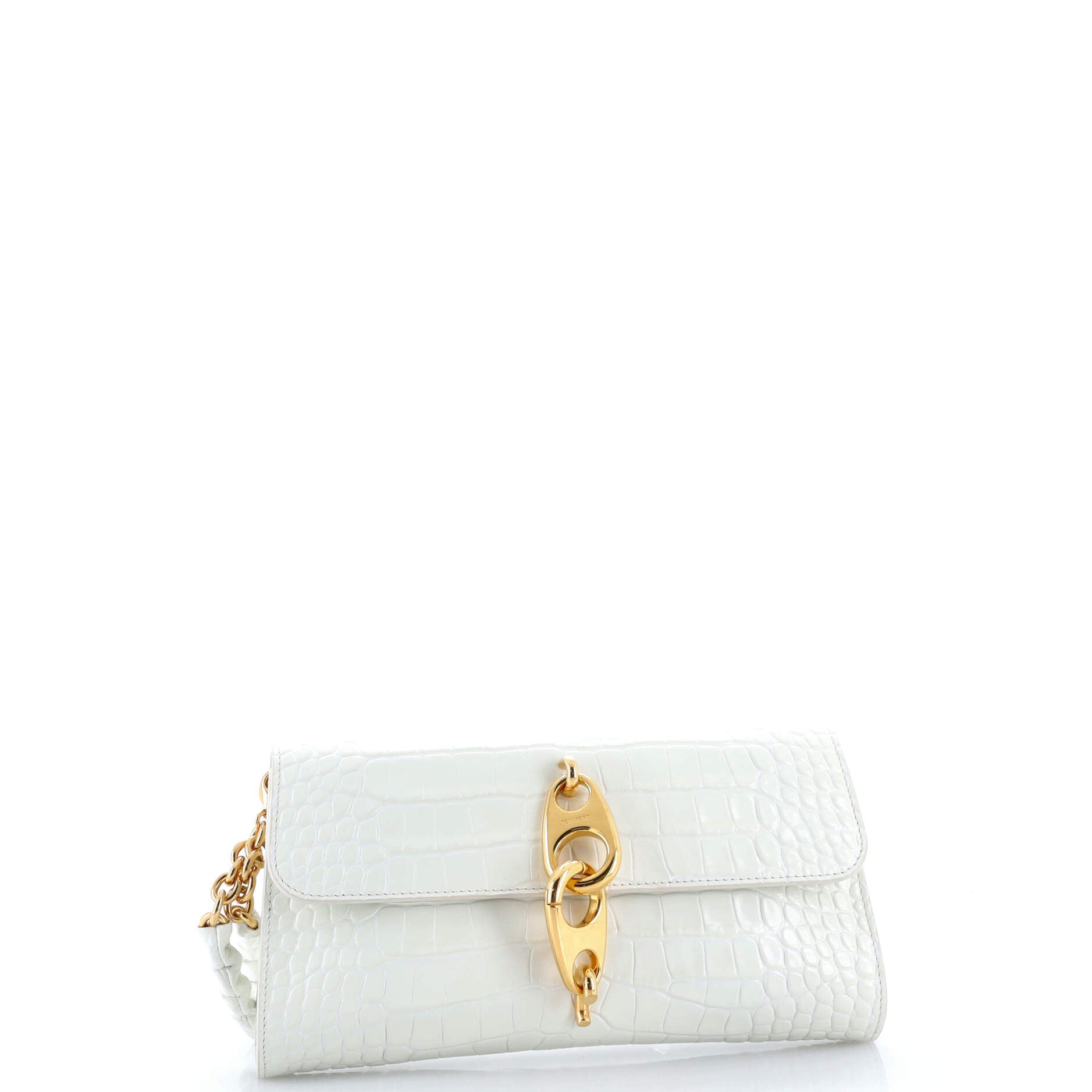 Model: Carine Wristlet Clutch Crocodile Embossed Leather