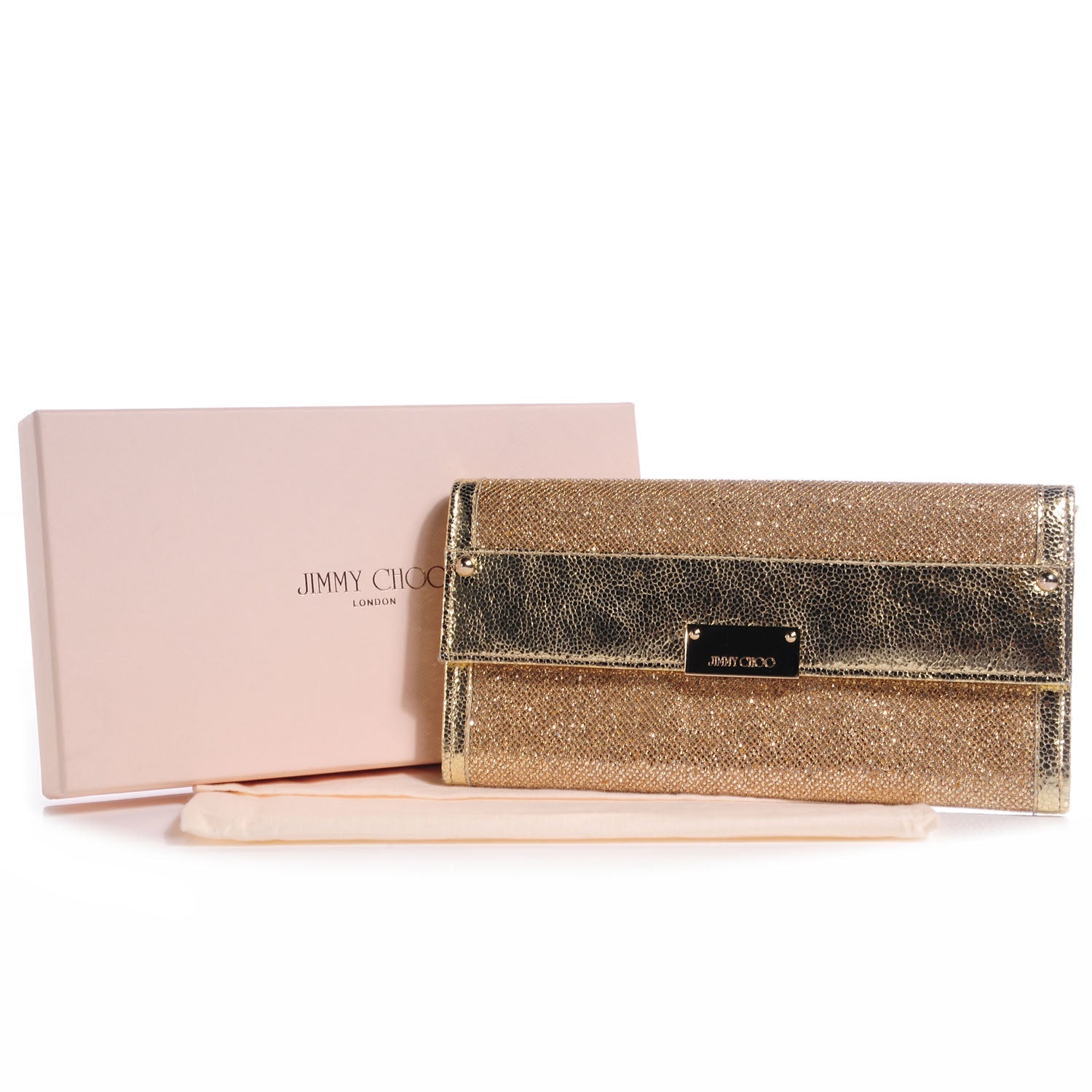 JIMMY CHOO GOLD GLITTER LEATHER REESE CLUTCH BAG