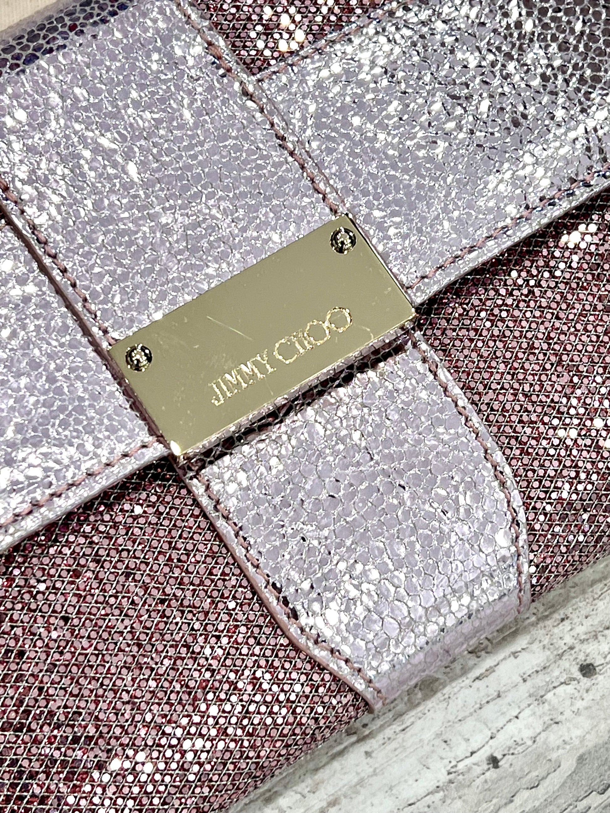 JIMMY CHOO METALLIC PINK LEATHER GLITTER UBAI CLUTCH BAG