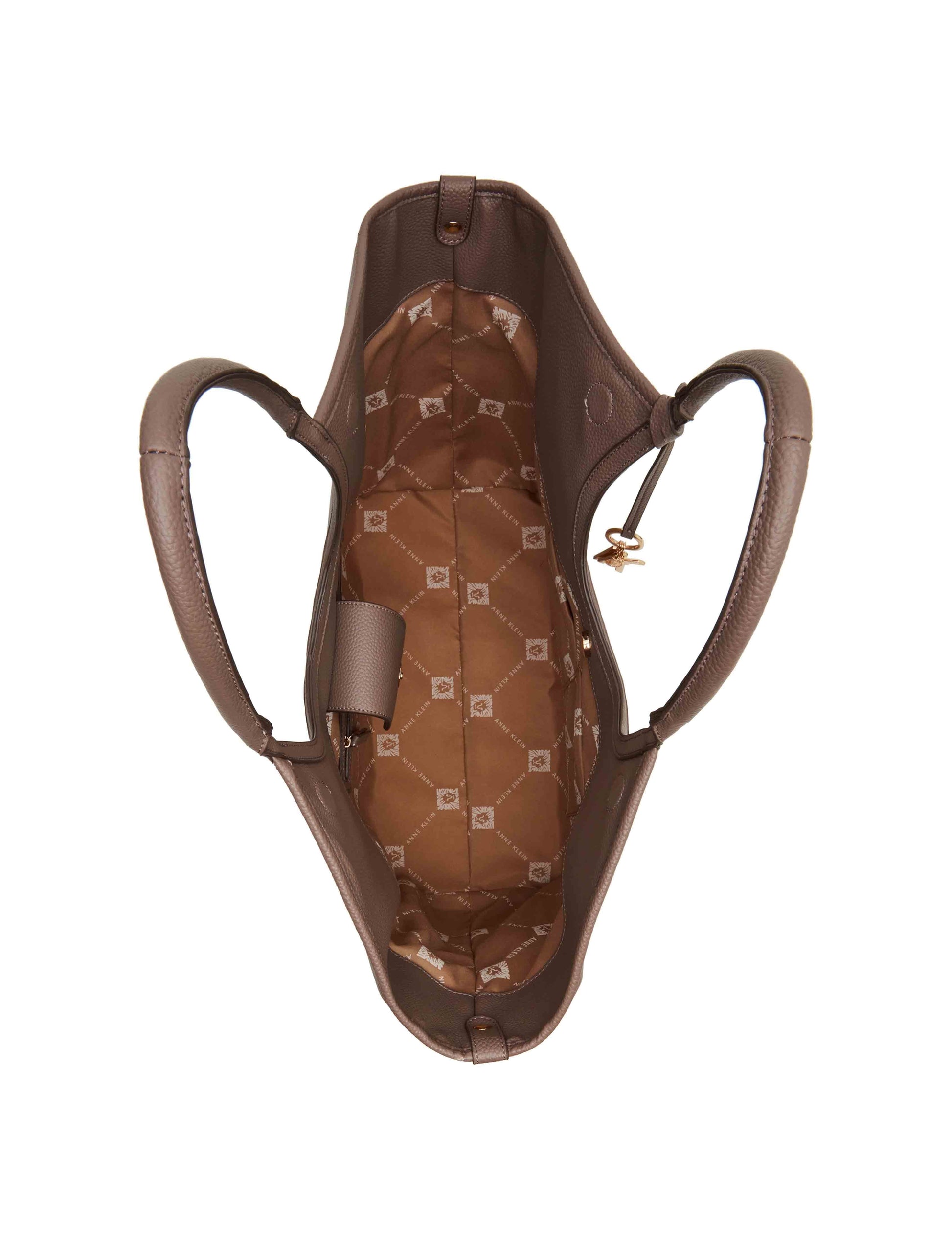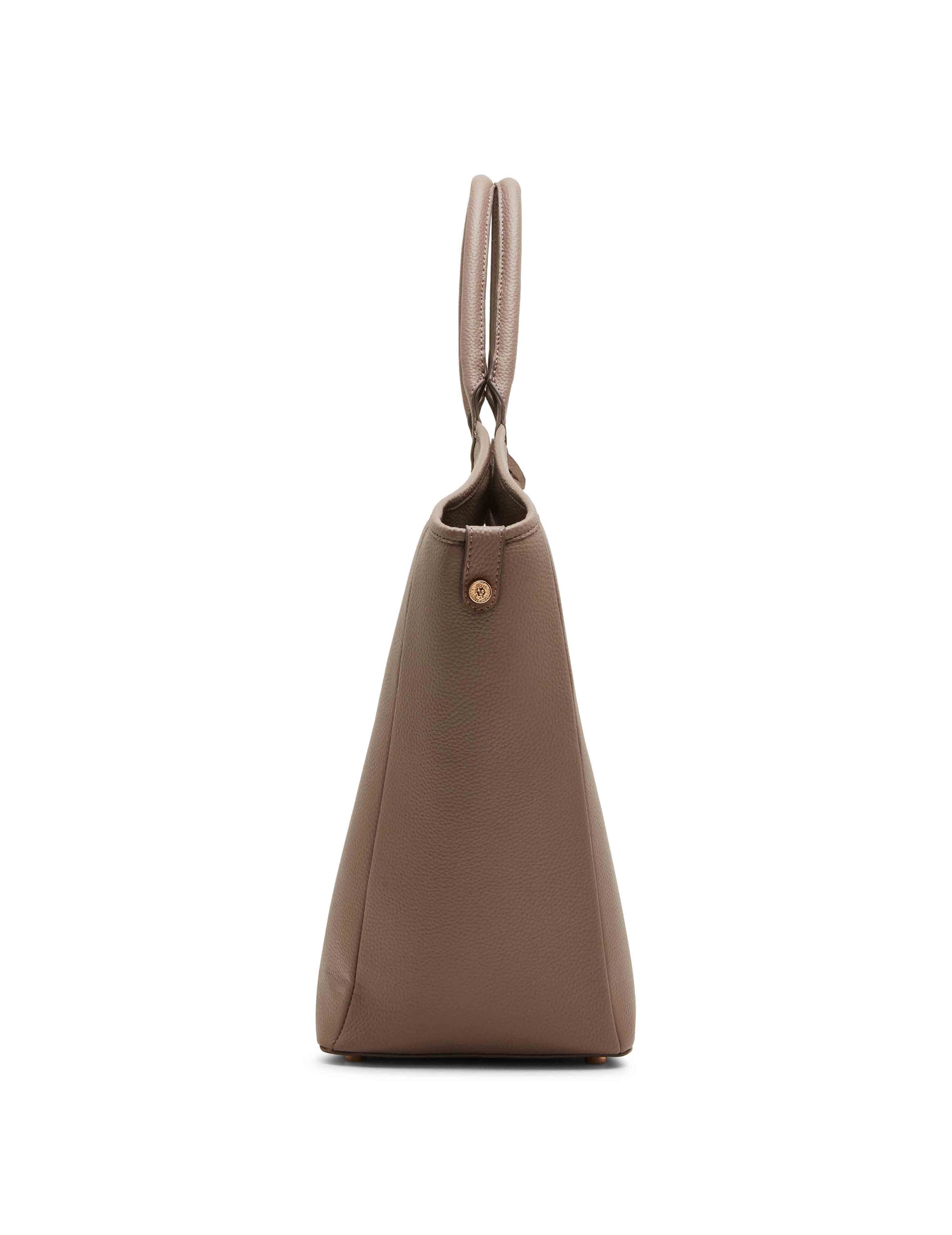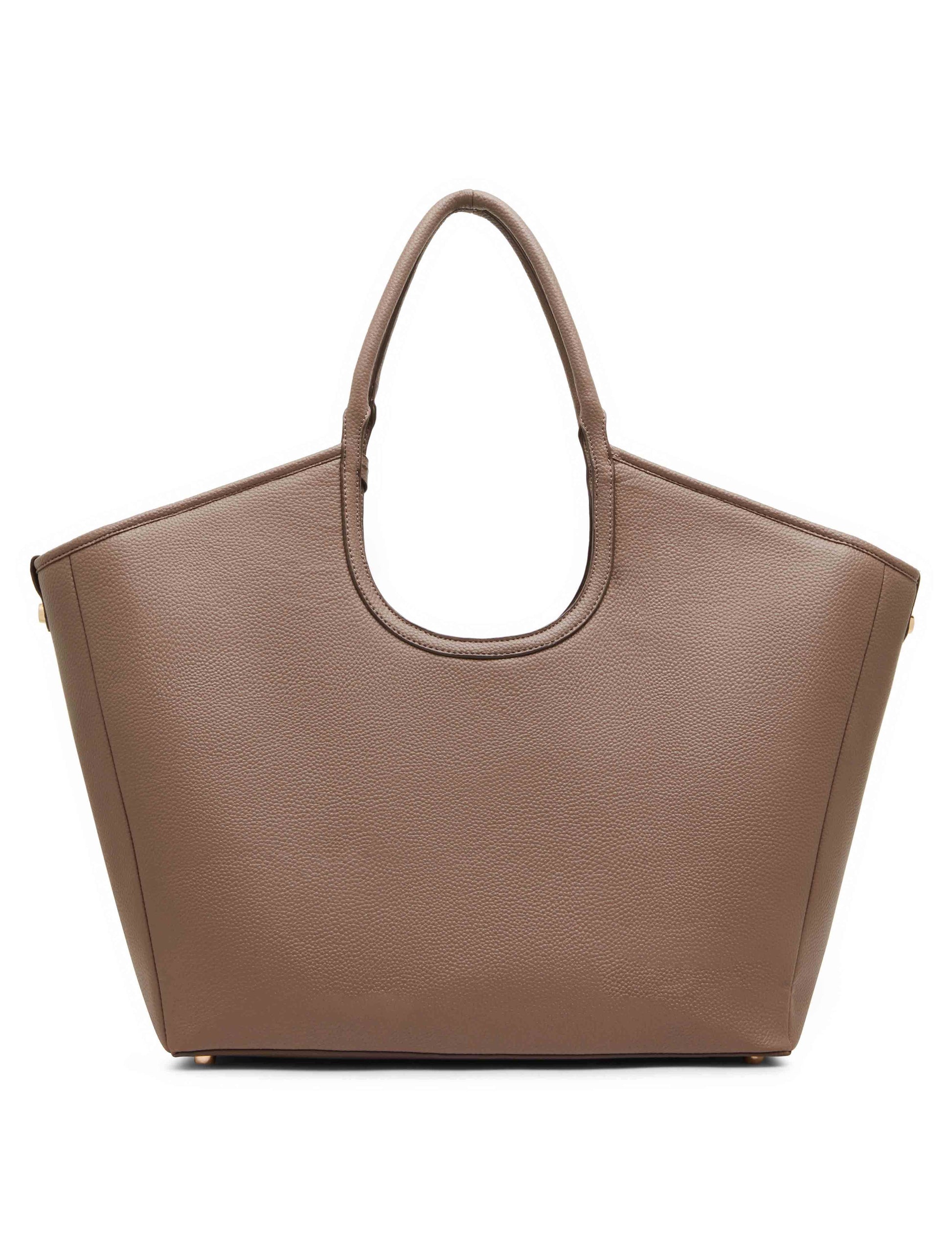 Upgrade your everyday style with our Large Structured Tote. Features a sleek silhouette, comfortable top handles and a chic logo charm. Designed for both fashion and function, this versatile tote offers ample space for all your essentials. Perfect for work or travel.