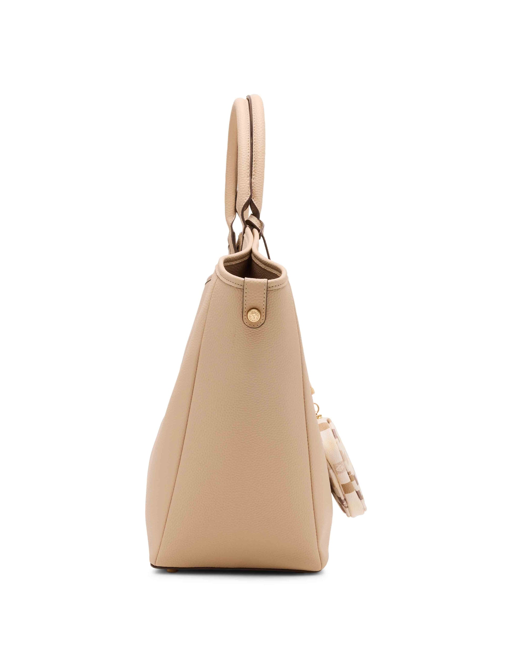 Upgrade your everyday style with our Large Structured Tote. Features a sleek silhouette, comfortable top handles and a chic logo charm. Designed for both fashion and function, this versatile tote offers ample space for all your essentials. Perfect for work or travel.
