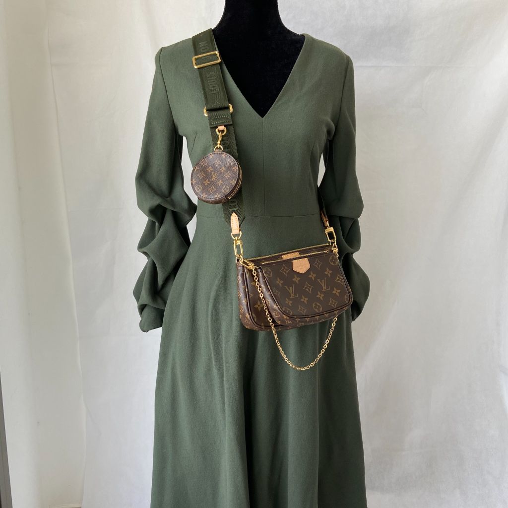 Louis Vuitton Monogram Canvas Multi Pochette Accessories, covered in monogram canvas on the exterior and comes with gold-toned fittings and canvas lining. This bag is supported by an adjustable 55 cm shoulder strap and a chain.