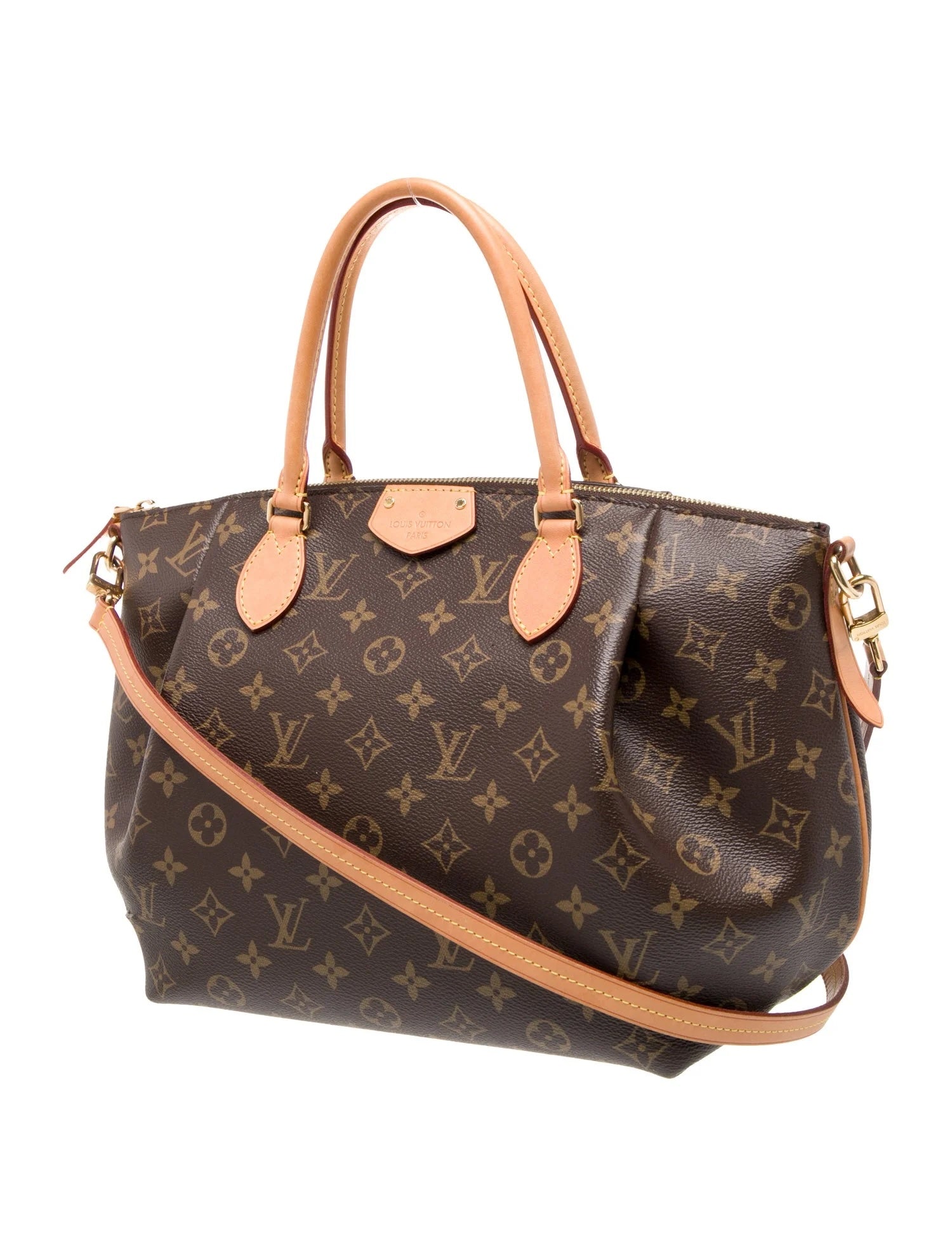 This Elegant Turenne GM is crafted in Louis Vuitton’s Signature Monogram coated canvas with feminine pleating for a refined silhouette. The bag is detailed with Vachetta cowhide rolled leather top handles, an optional adjustable shoulder strap, and polished brass hardware.