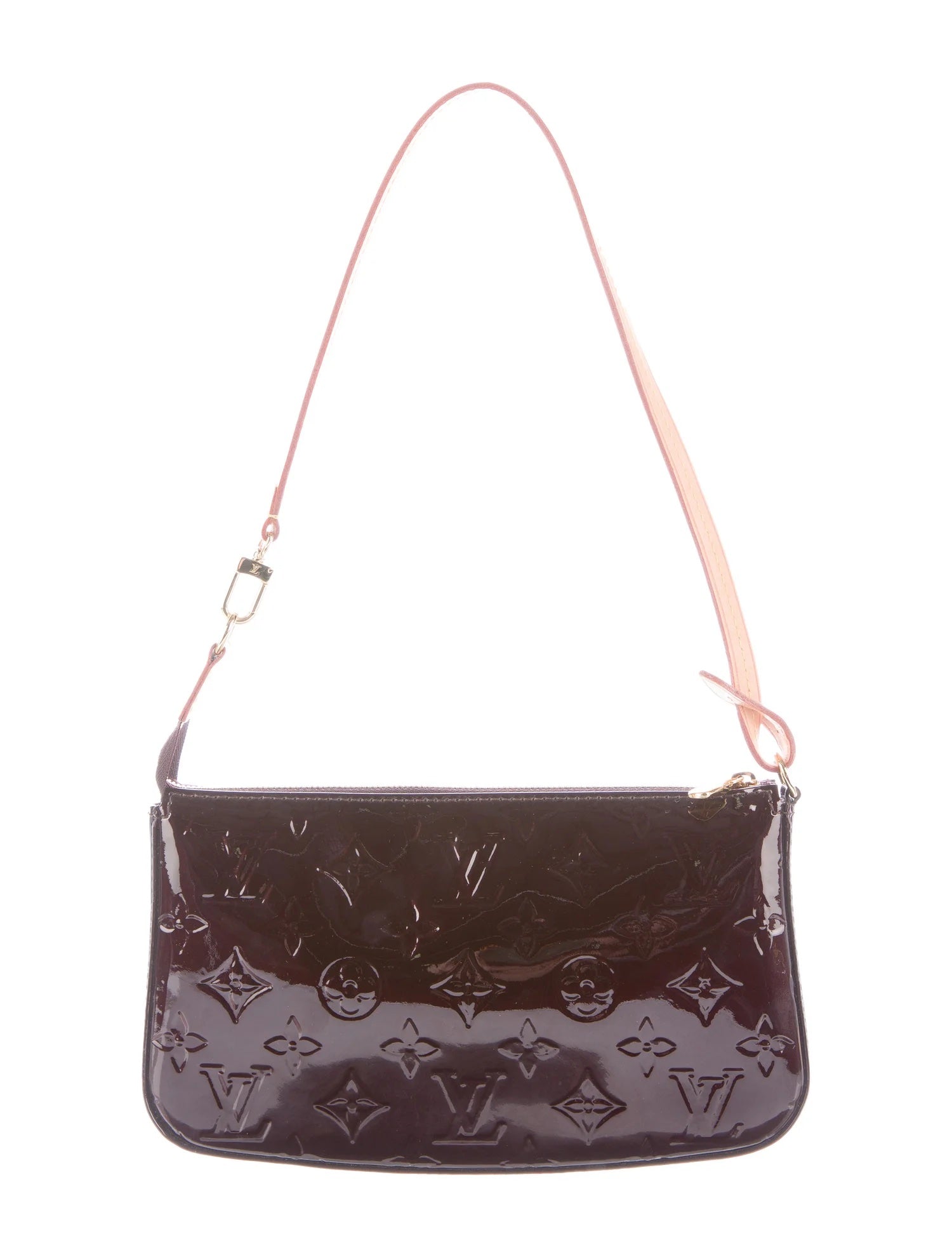 This Stylish Pochette is Crafted of Louis Vuitton Monogrammed Embossed Vernis patent leather in Amarante. T