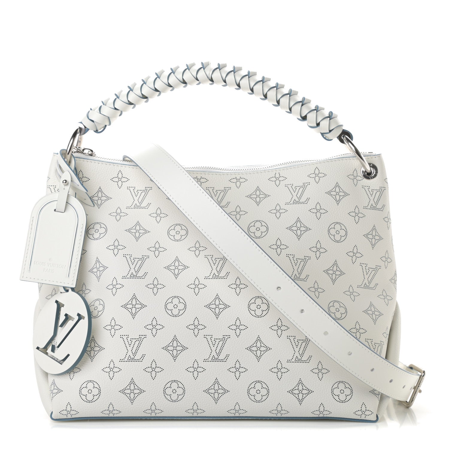 Louis Vuitton Snow Beaubourg Hobo MM in White Monogram Mahina Leather with Silver Tone Hardware,