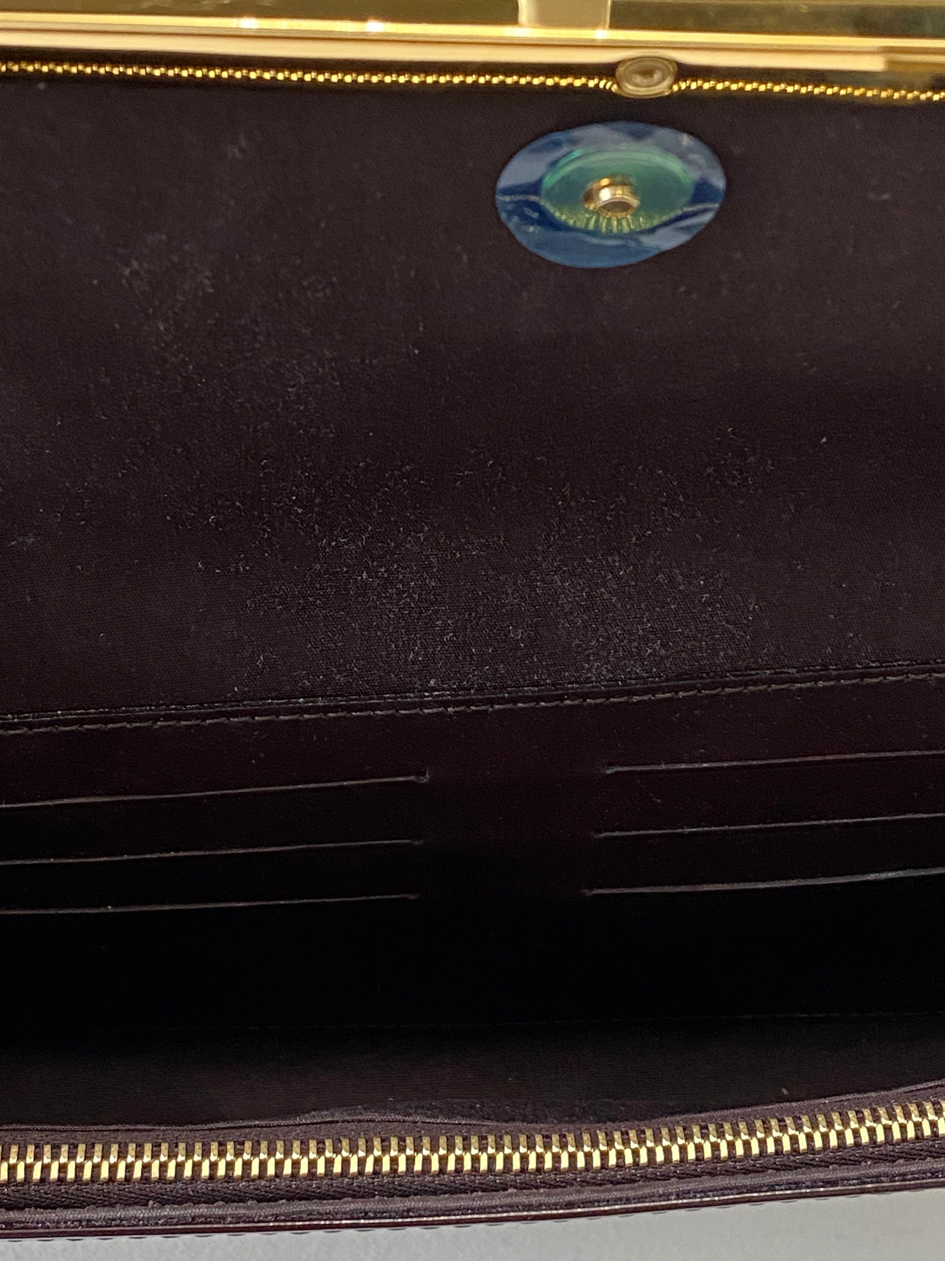 This classic pochette is crafted of monogram embossed Vernis patent leather in a deep burgundy. This clutch features a classic flap shape with a brass Louis Vuitton engraved frame, an optional Vernis shoulder strap, and rear patch pockets. The clutch opens to a matching burgundy leather and fabric interior with card slots and a pocket.