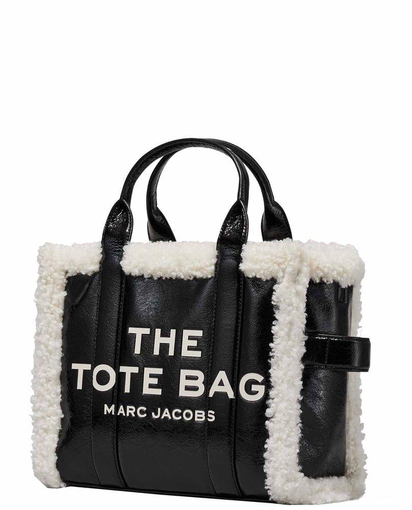 MARC JACOBS Calfskin Faux Shearling Tote Bag in Black & White Trim .