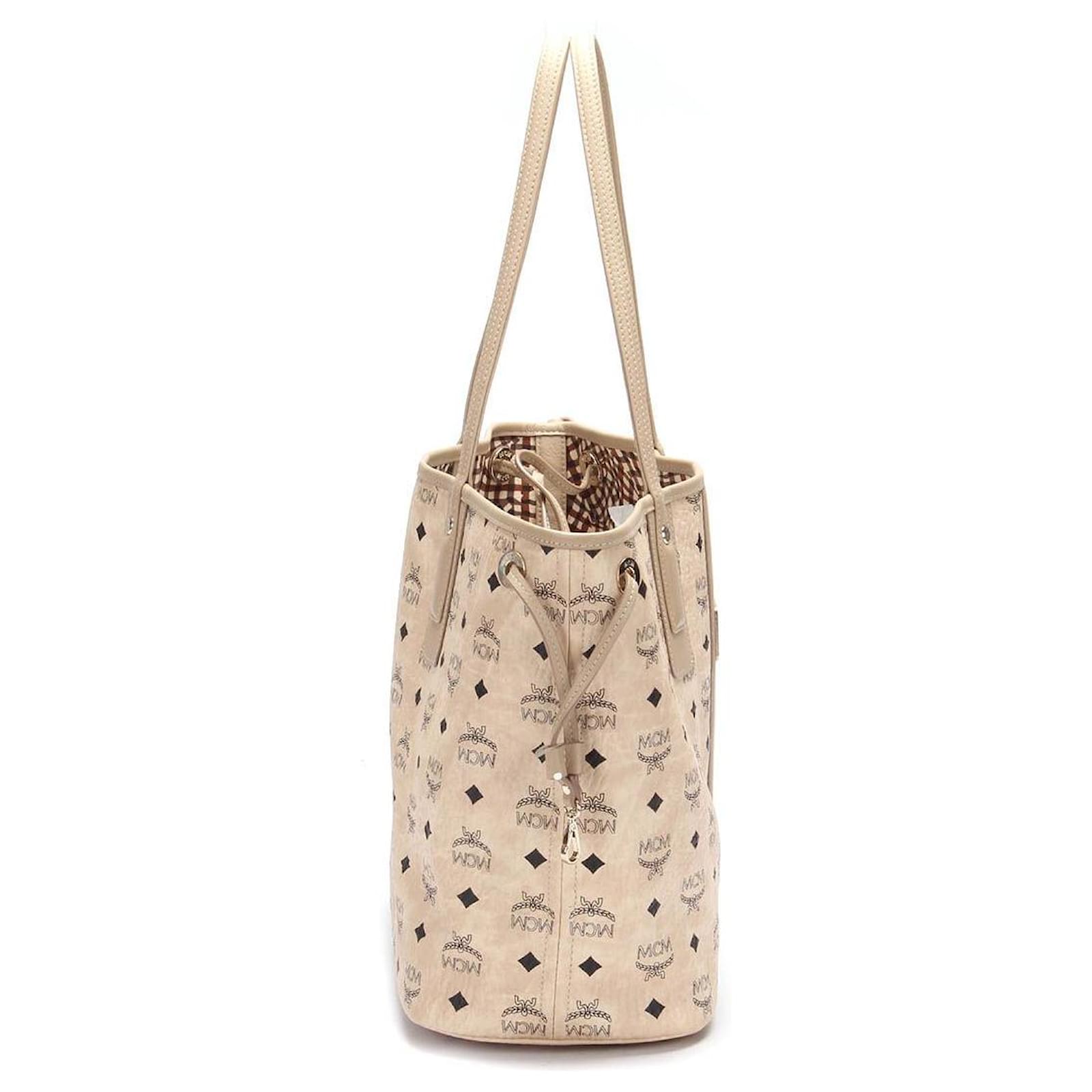 MCM VISETOS MEDIUM LIZ REVERSIBLE TOTE BAG IN BEIGE
