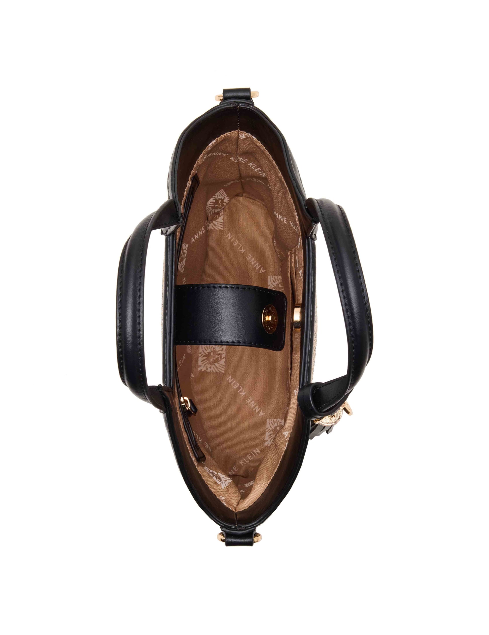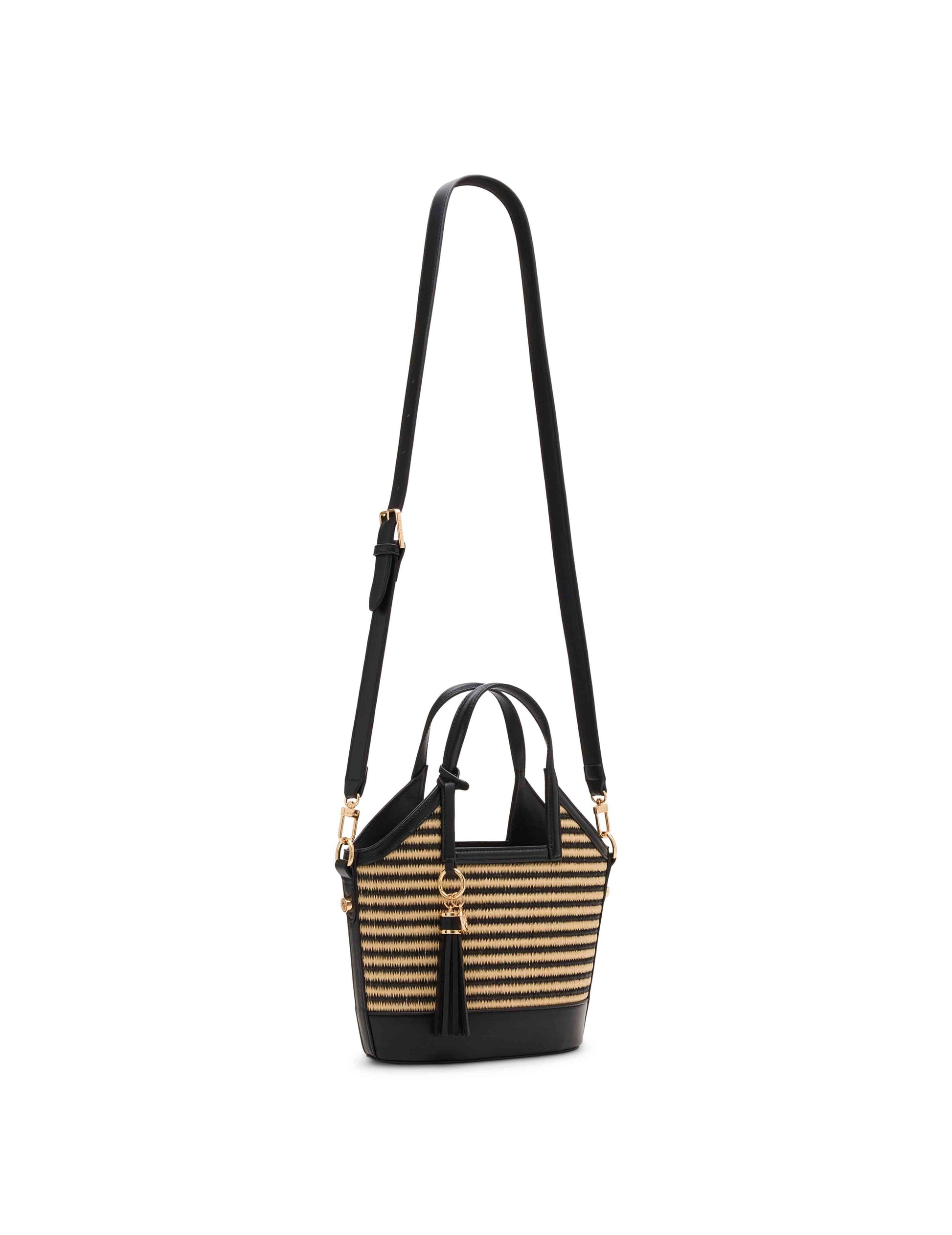 This chic mini tote is the perfect addition to your closet. Features a striped straw material, and will fit your every day essentials. Perfect for weekend getaways.