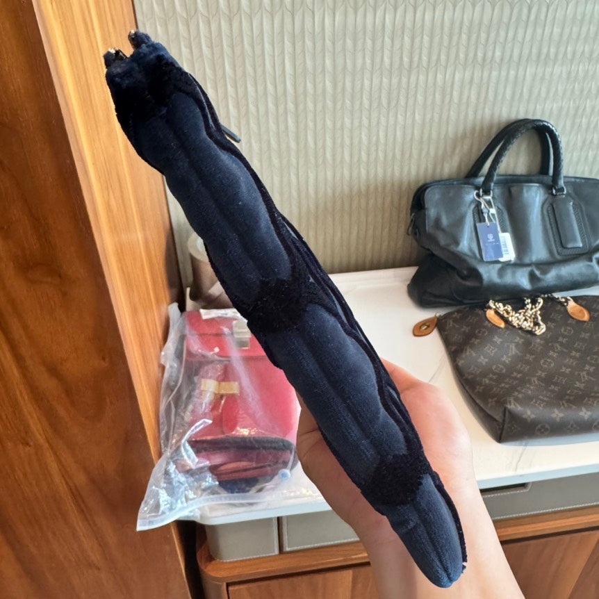 Preloved Chanel Navy Clutch Bag Quilted Suede