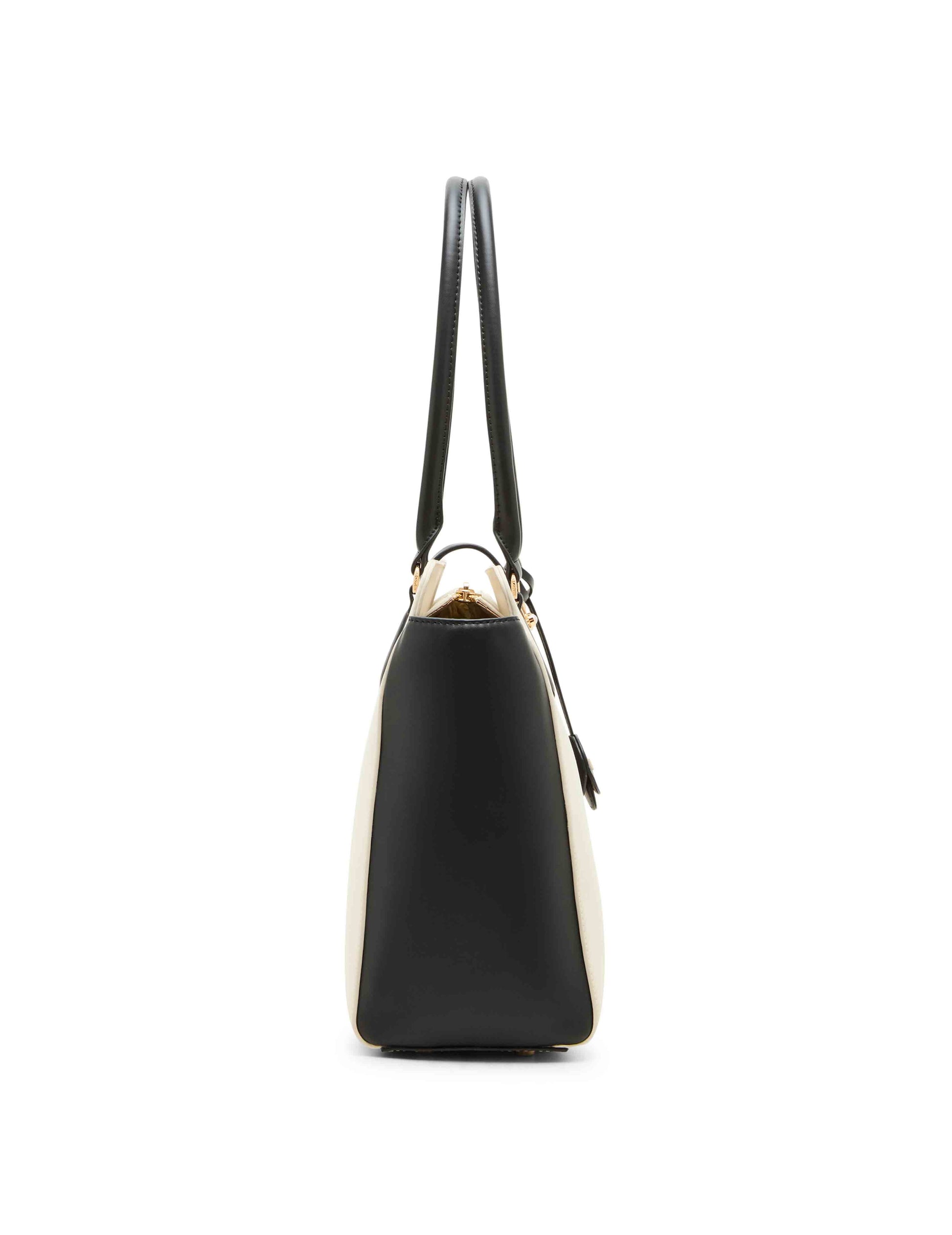 This is the perfect tote for work or travel. Features a luxurious pushlock closure and a cute mirror hangoff. Also includes a laptop case and pouch for your small belongings. Add to cart now!