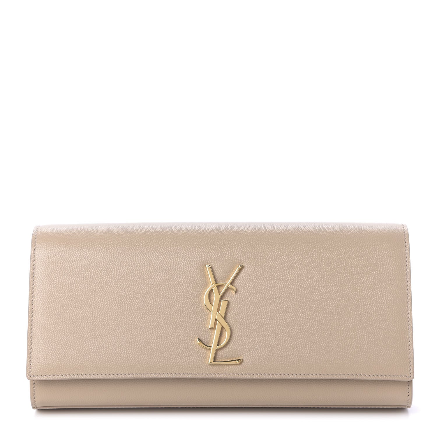 YSL GRAIN DE POUDRE LEATHER CASSANDRE MONOGRAM CLUTCH BAG